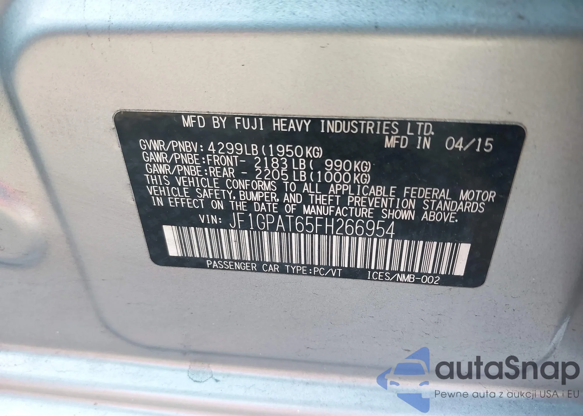 LOT: 41079258 VIN: JF1GUABC9R8858653
