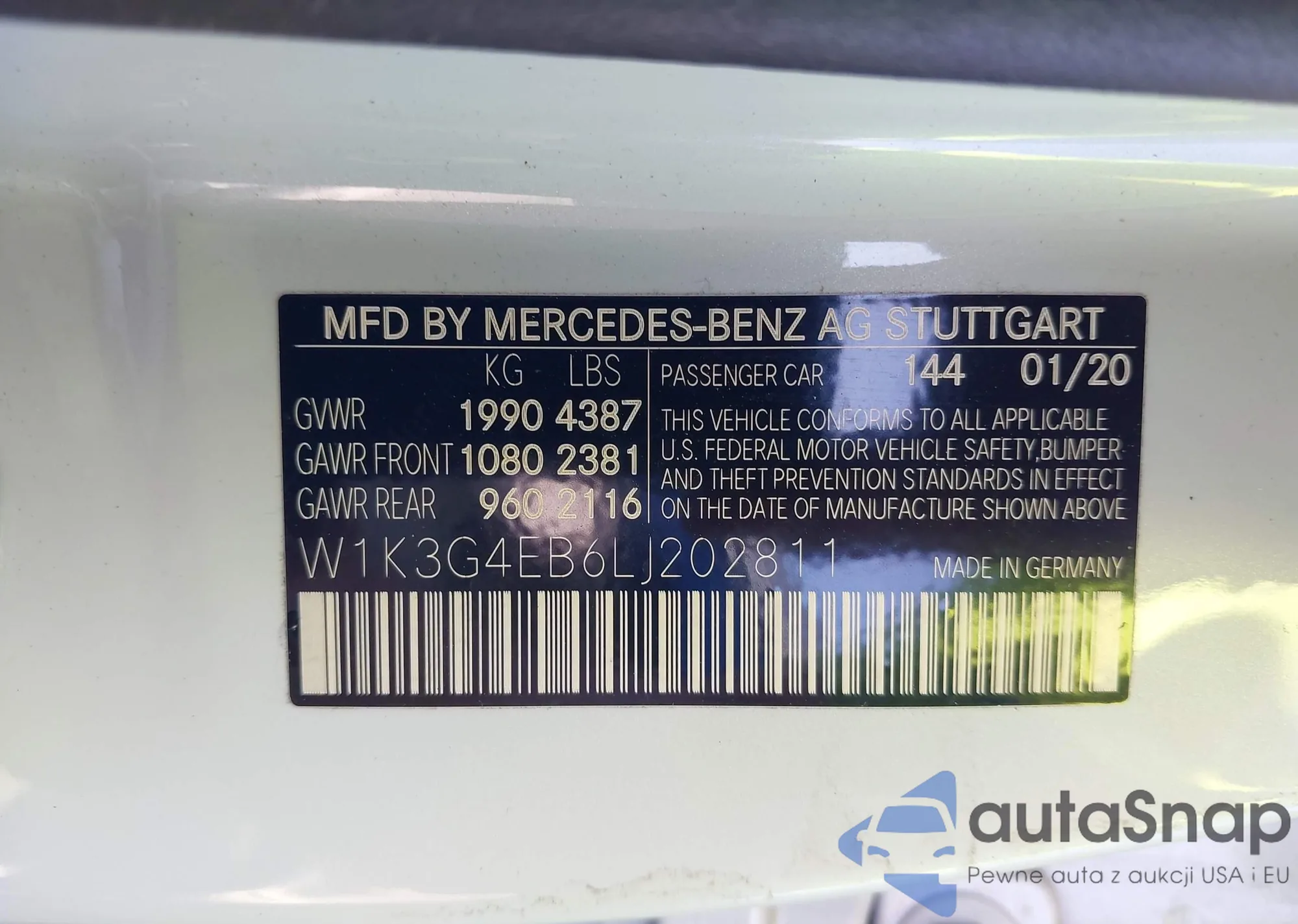 • VIN W1K3G4EB6LJ202811