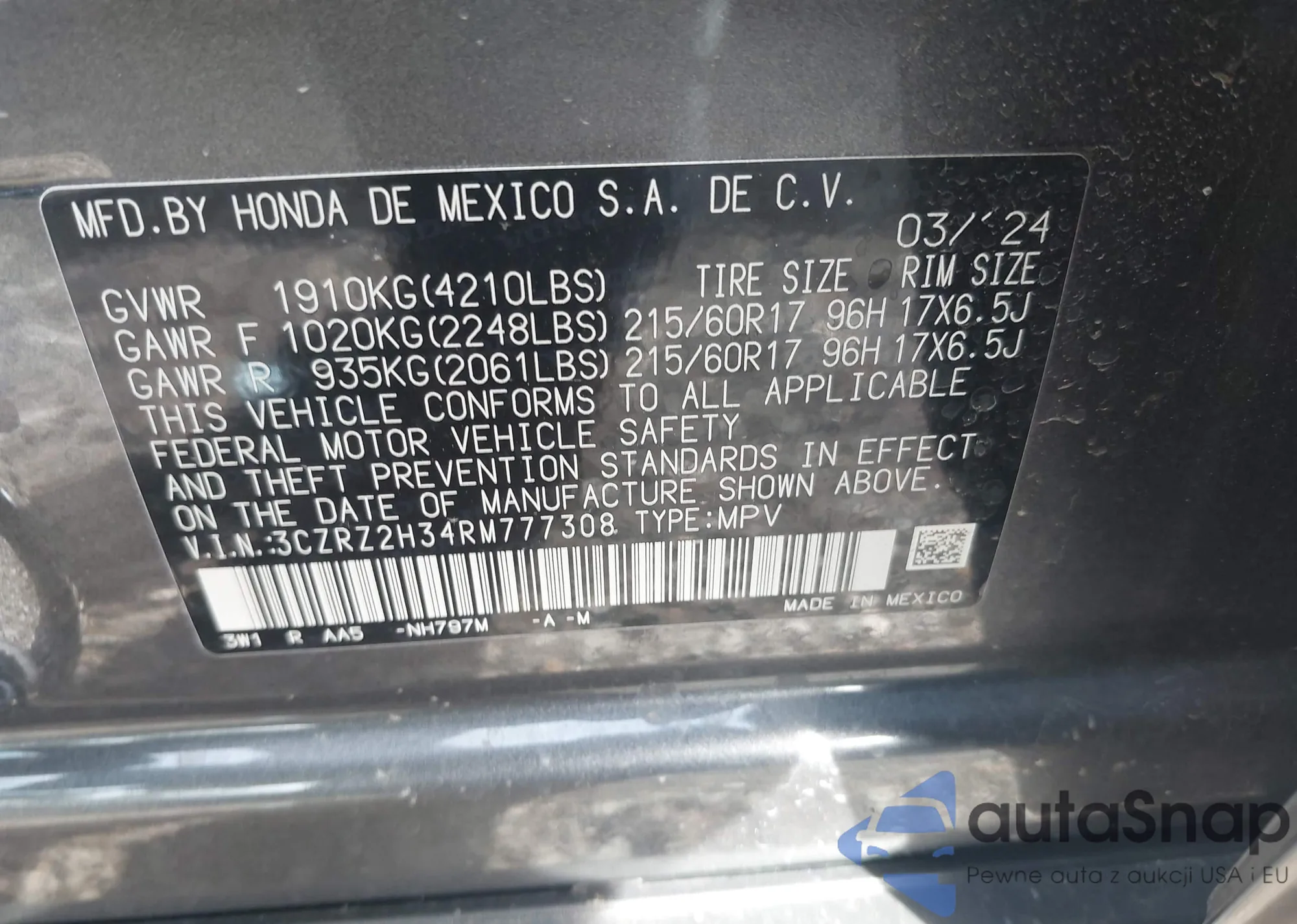 LOT: 41938058 VIN: 3CZRZ1H30SM704601
