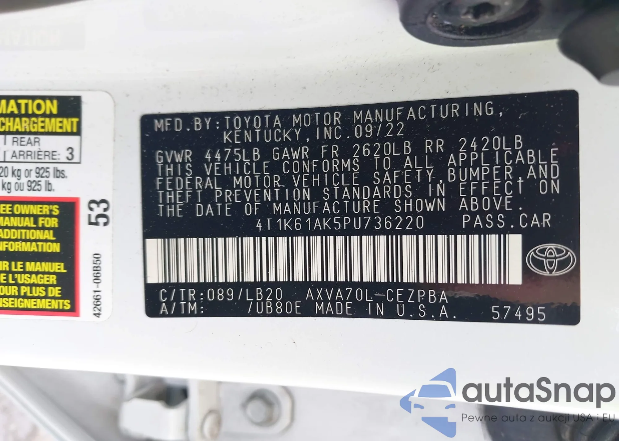 • VIN 4T1K61AK5PU736220