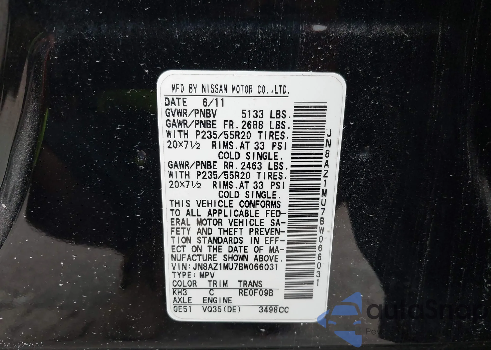 • VIN JN8AZ1MU7BW066031
