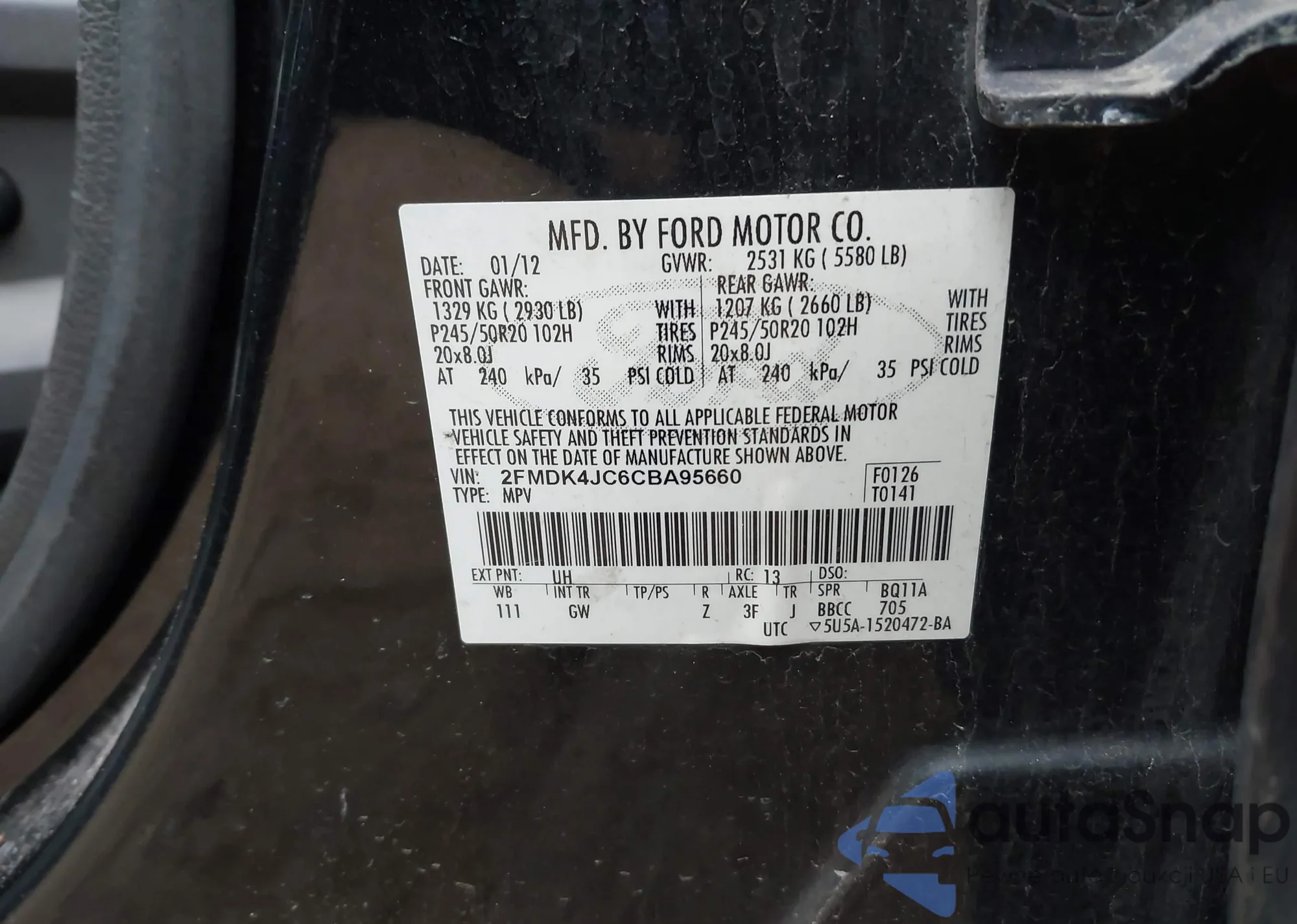 LOT: 42079115 VIN: 2FMDK4JC6CBA95660