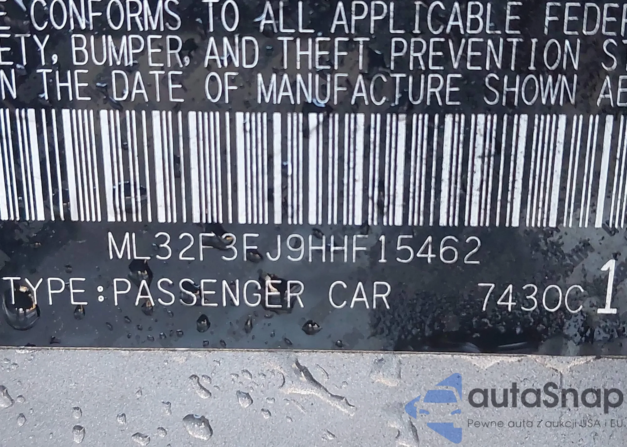LOT: 41196340 VIN: ML32F3FJ9HHF15462