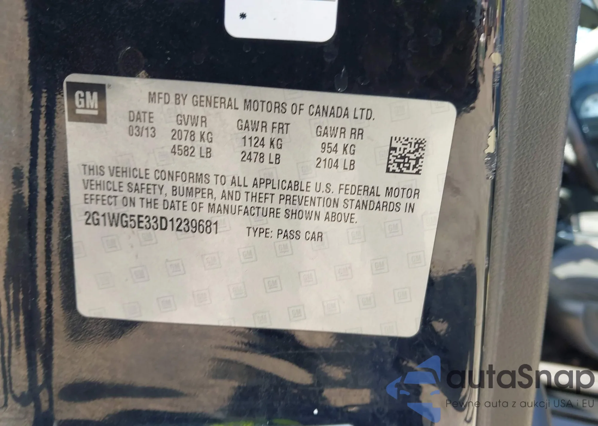 LOT: 42154683 VIN: 2G1WG5E33D1239681