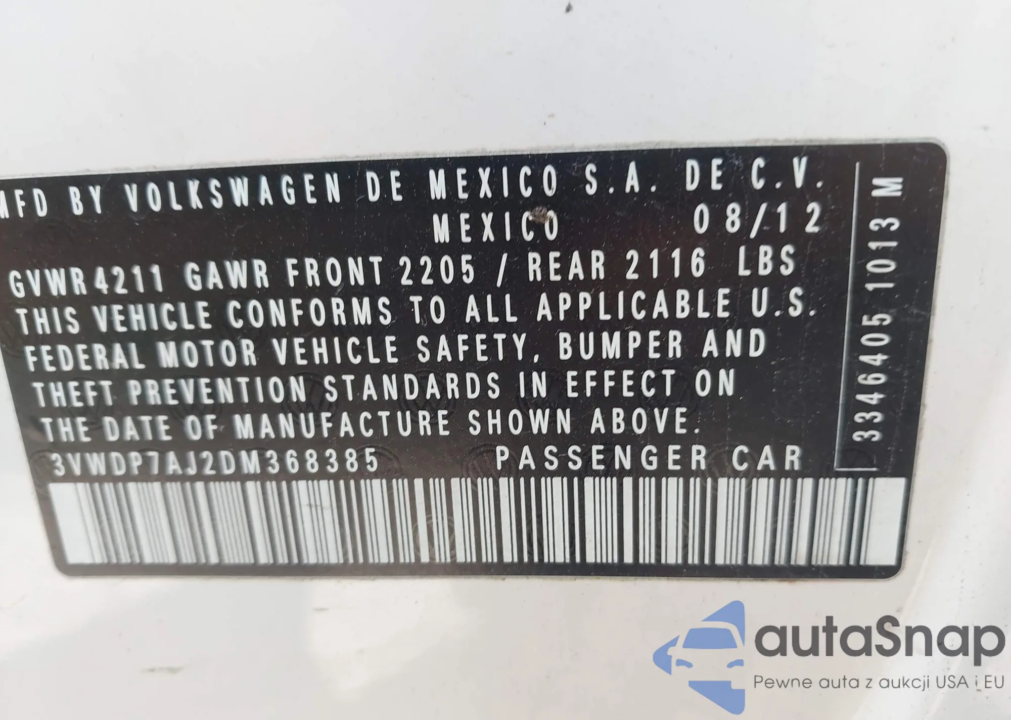 • VIN 3FADP4BJ6KM101771