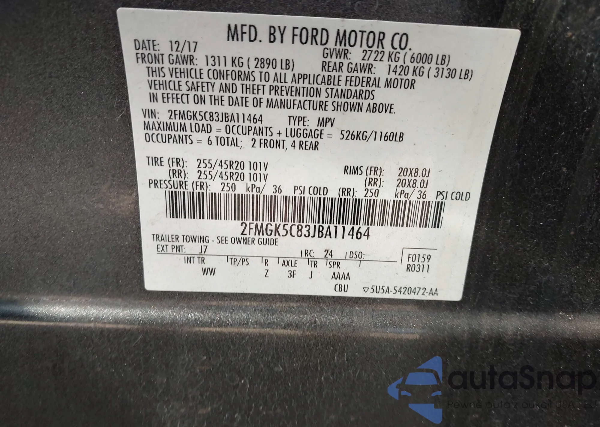• VIN 2FMGK5C83JBA11464