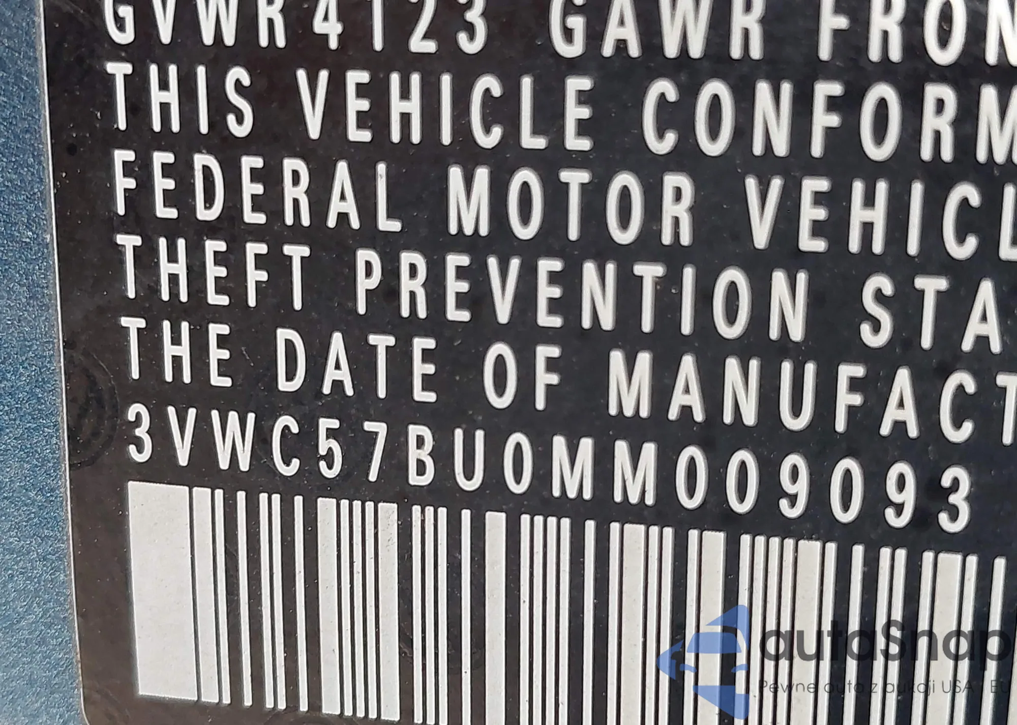 • VIN 3VWC57BU0MM009093