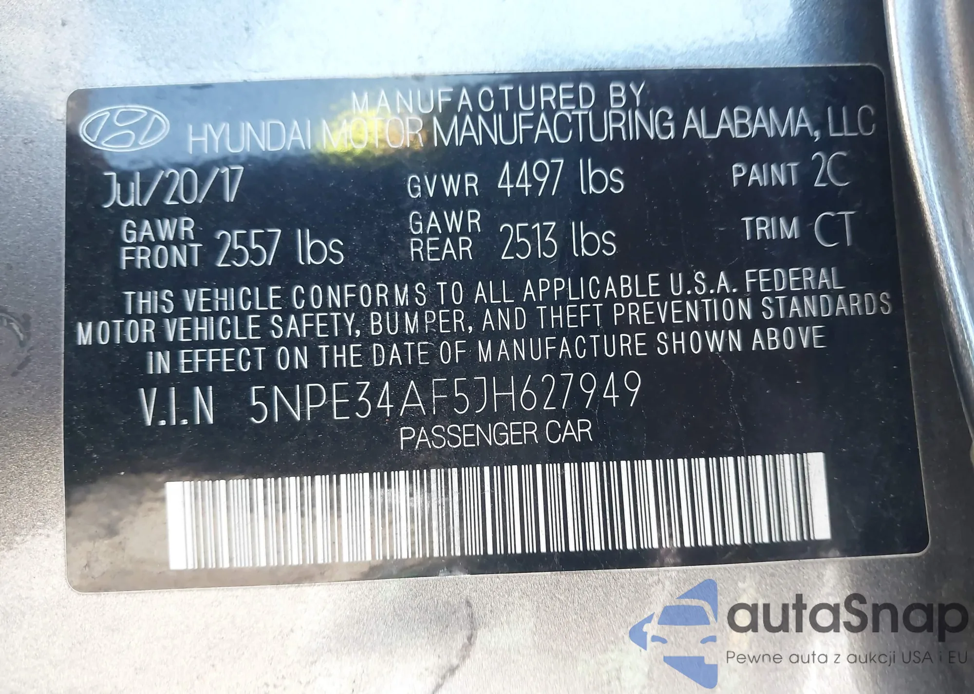 • VIN 5NPE34AF5JH627949