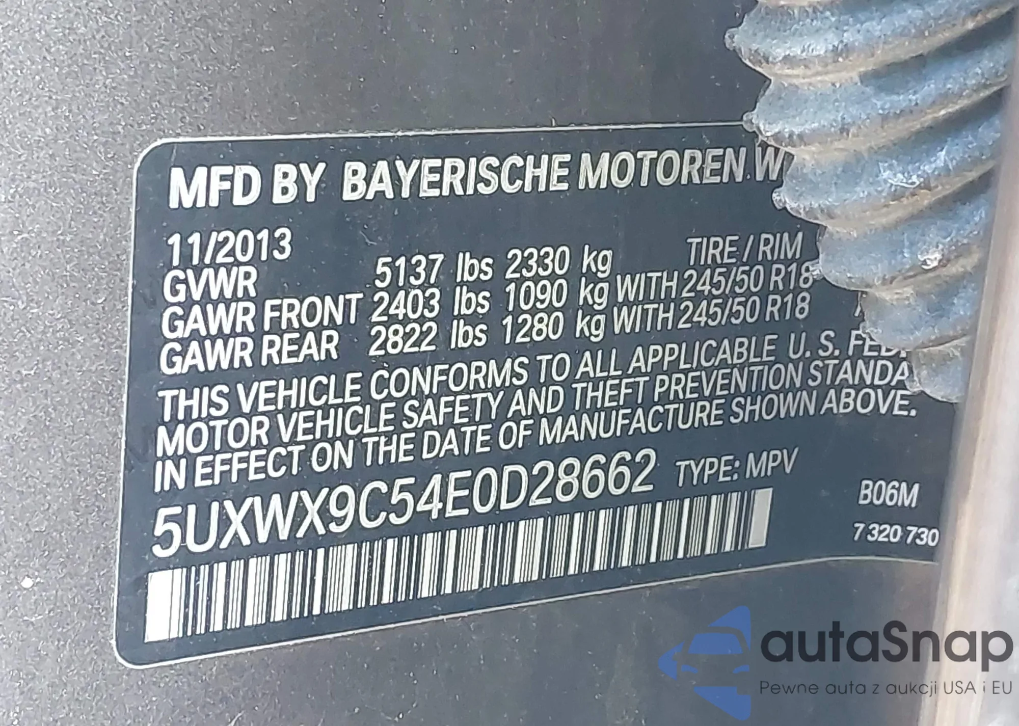 • VIN 5UXWX9C54E0D28662
