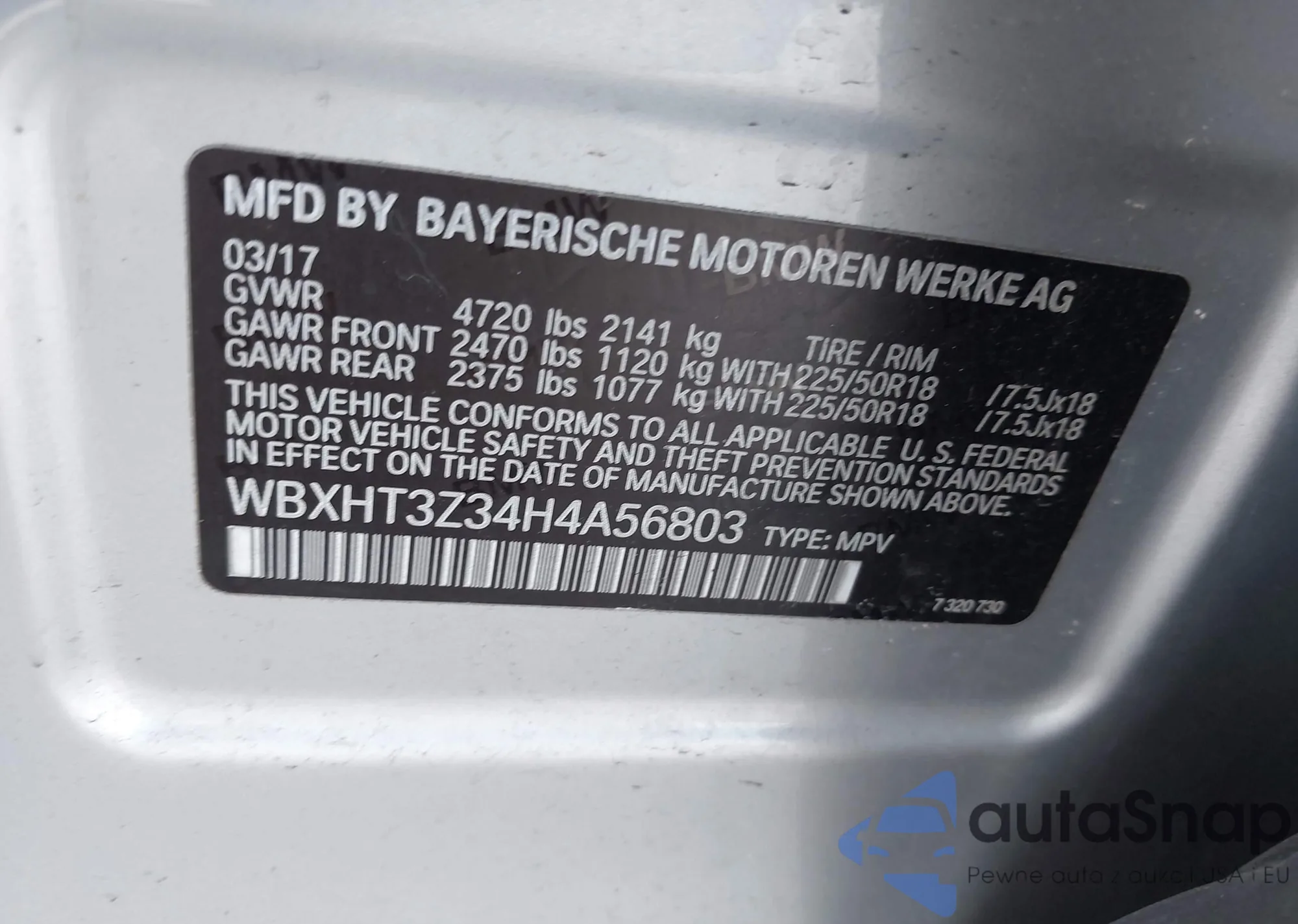 LOT: 42097063 VIN: WBXHT3Z34H4A56803