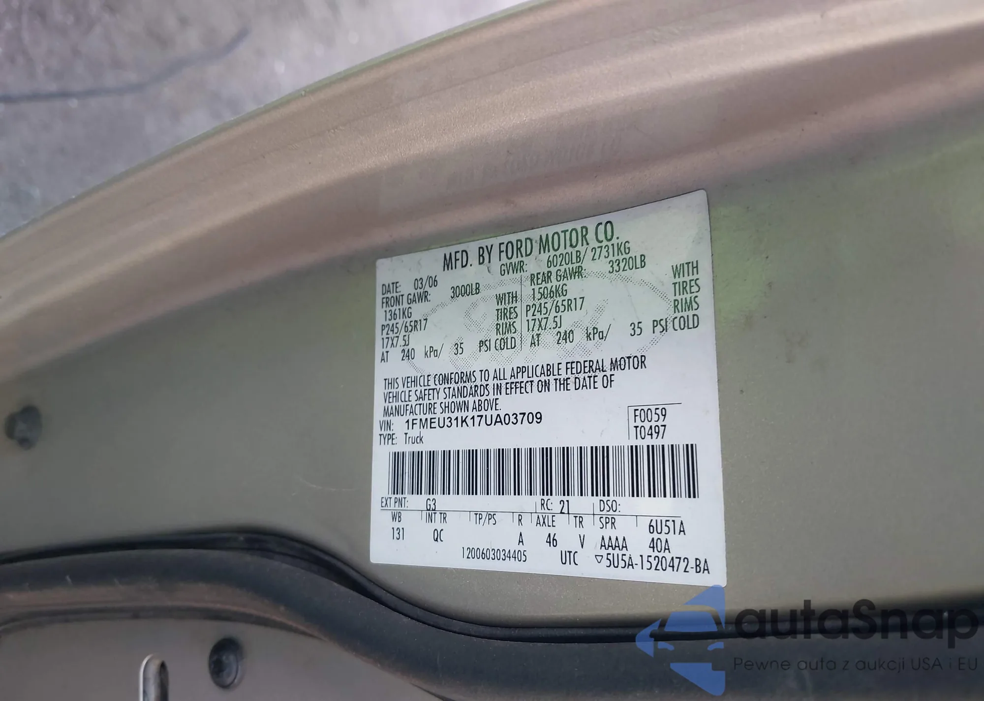 • VIN 1FMEU31K17UA03709