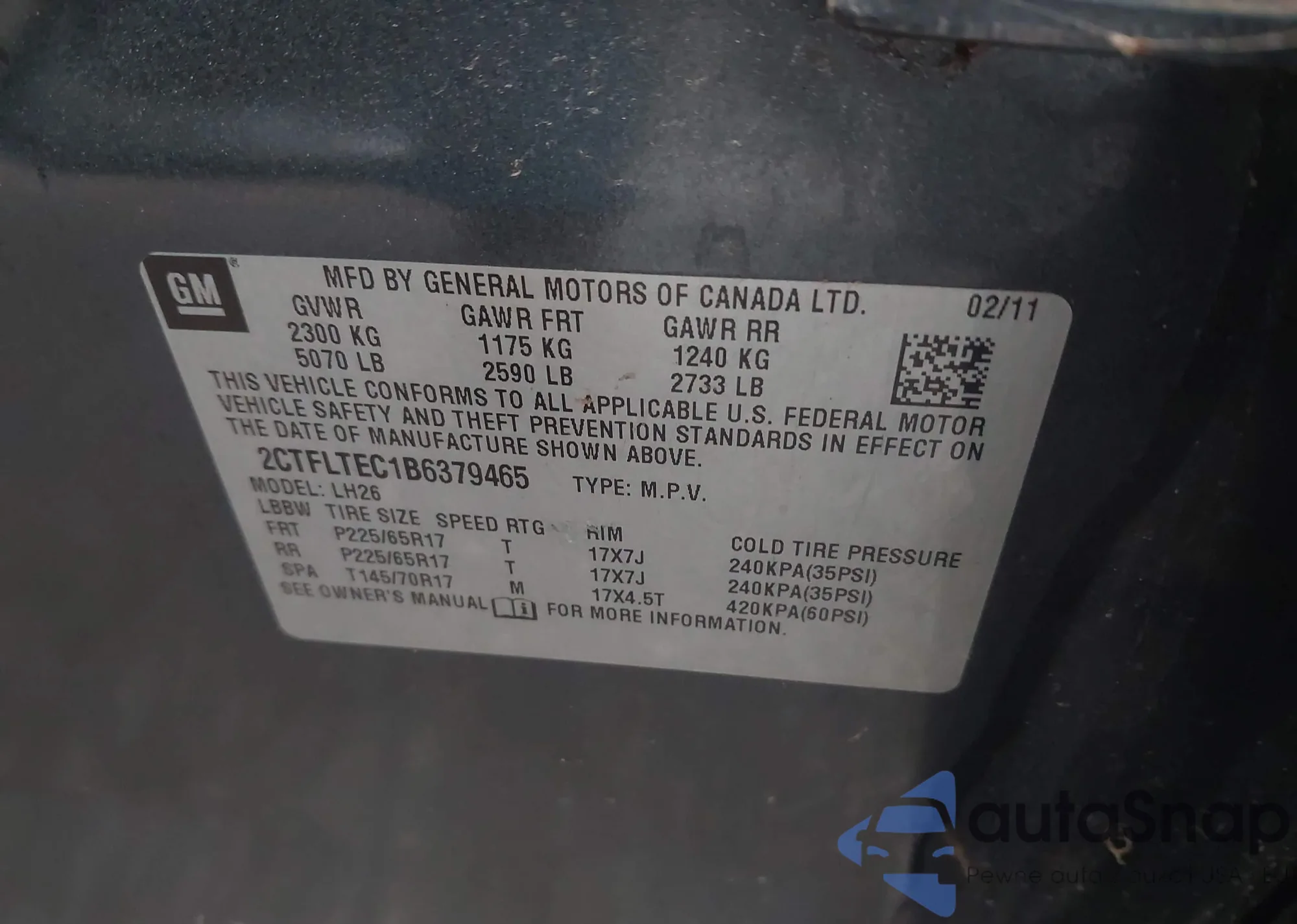 LOT: 42119182 VIN: 2CTFLTEC1B6379465