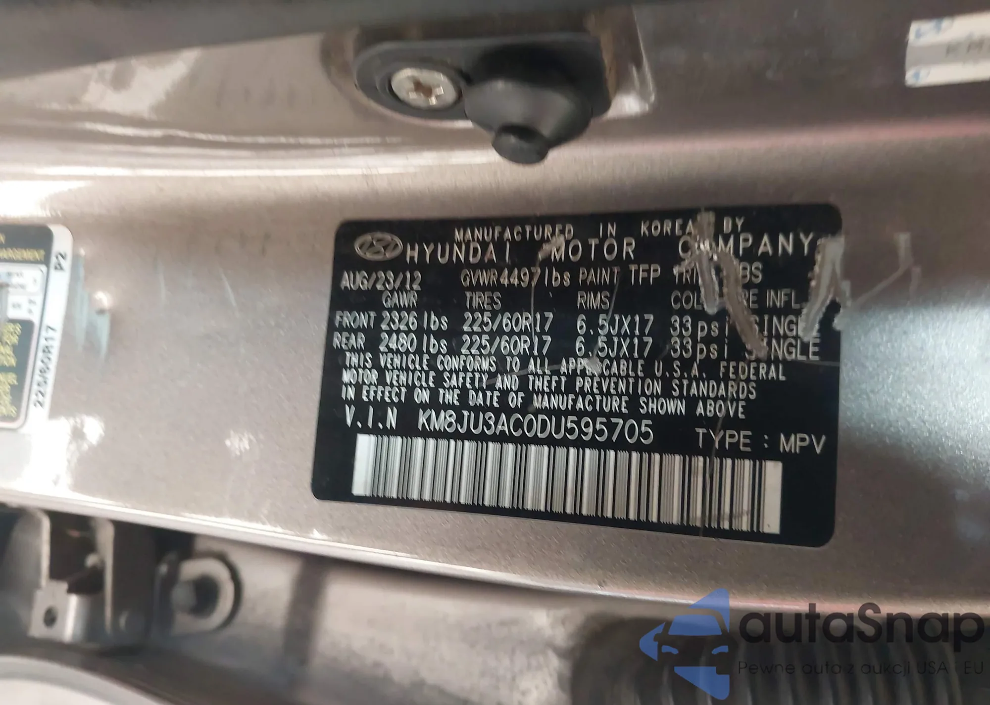 LOT: 41796222 VIN: KM8JU3AC0DU595705