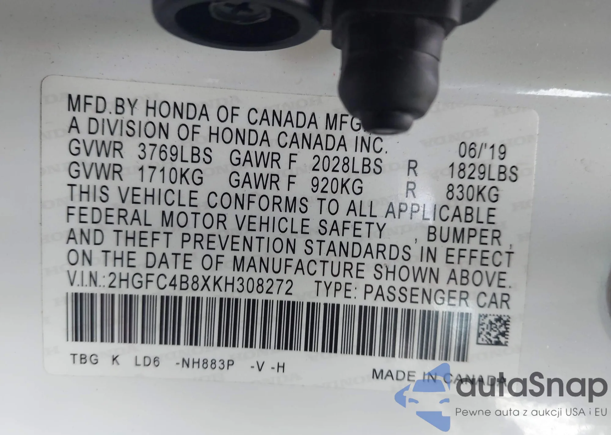 LOT: 42042819 VIN: 2HGFB2F57DH517513