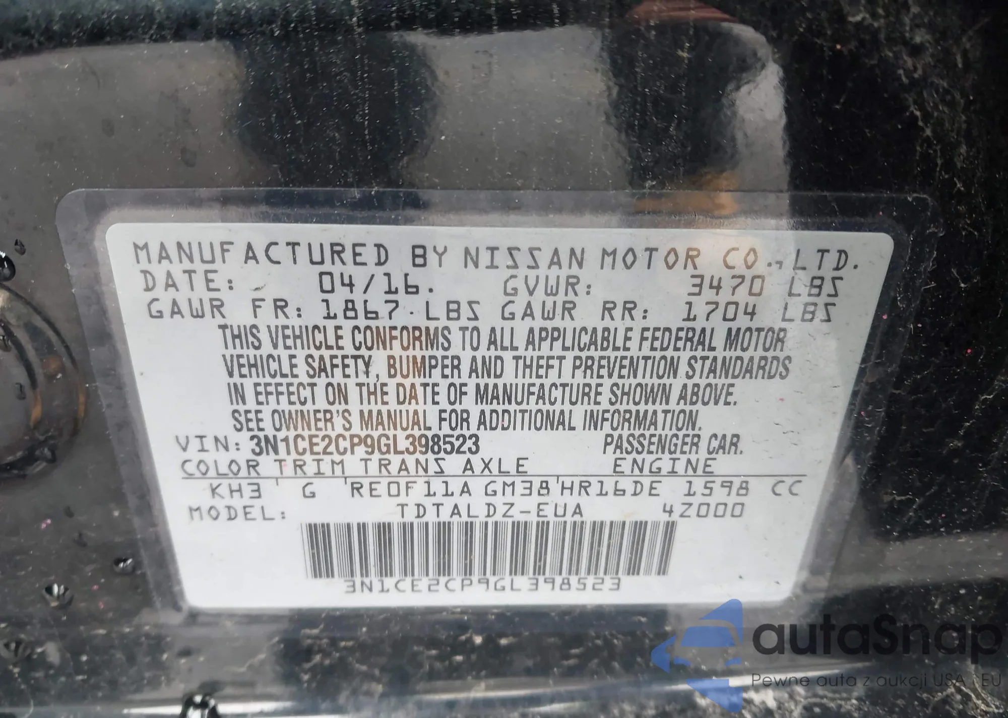 • VIN 3N1AB7AP9GL648259