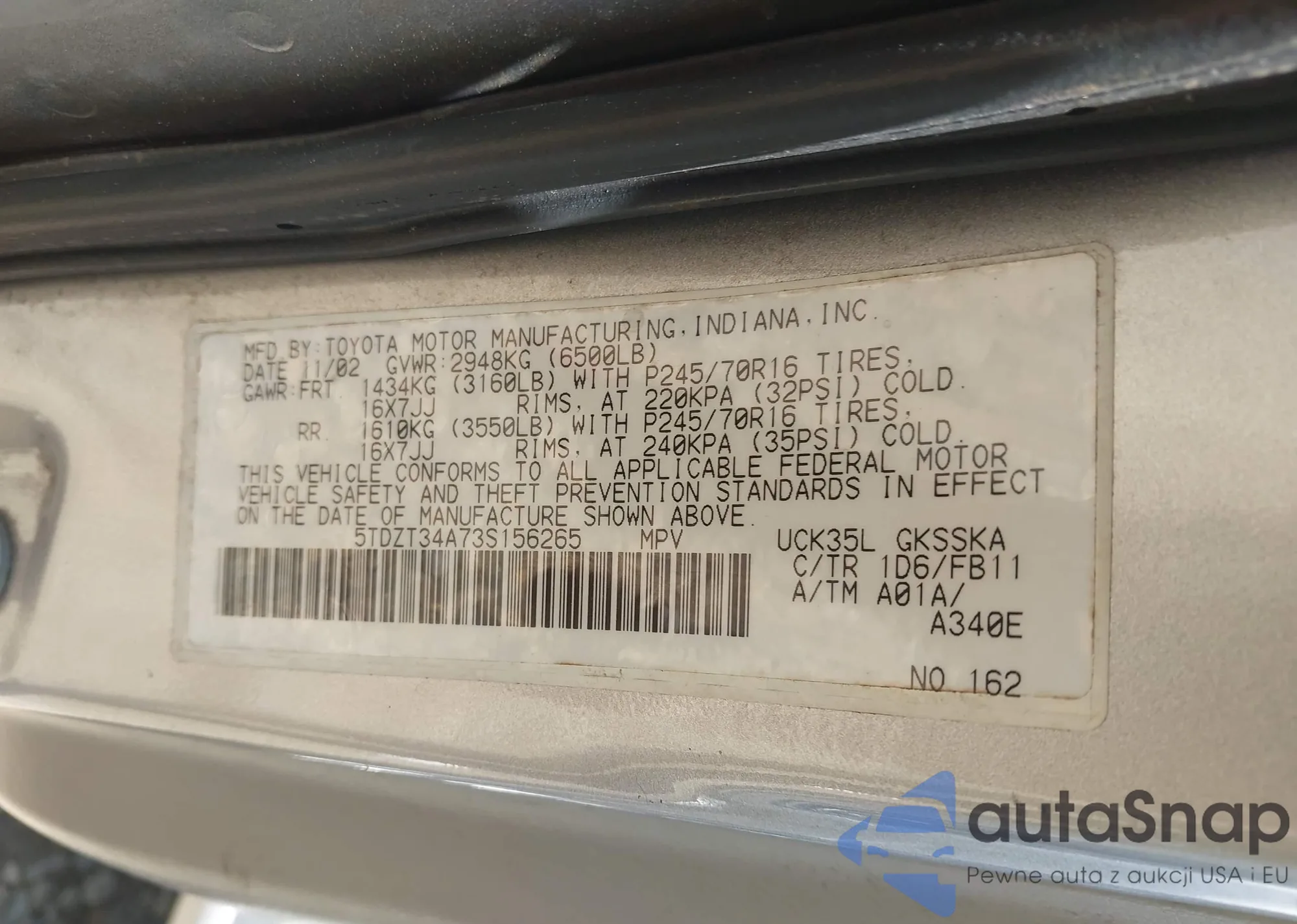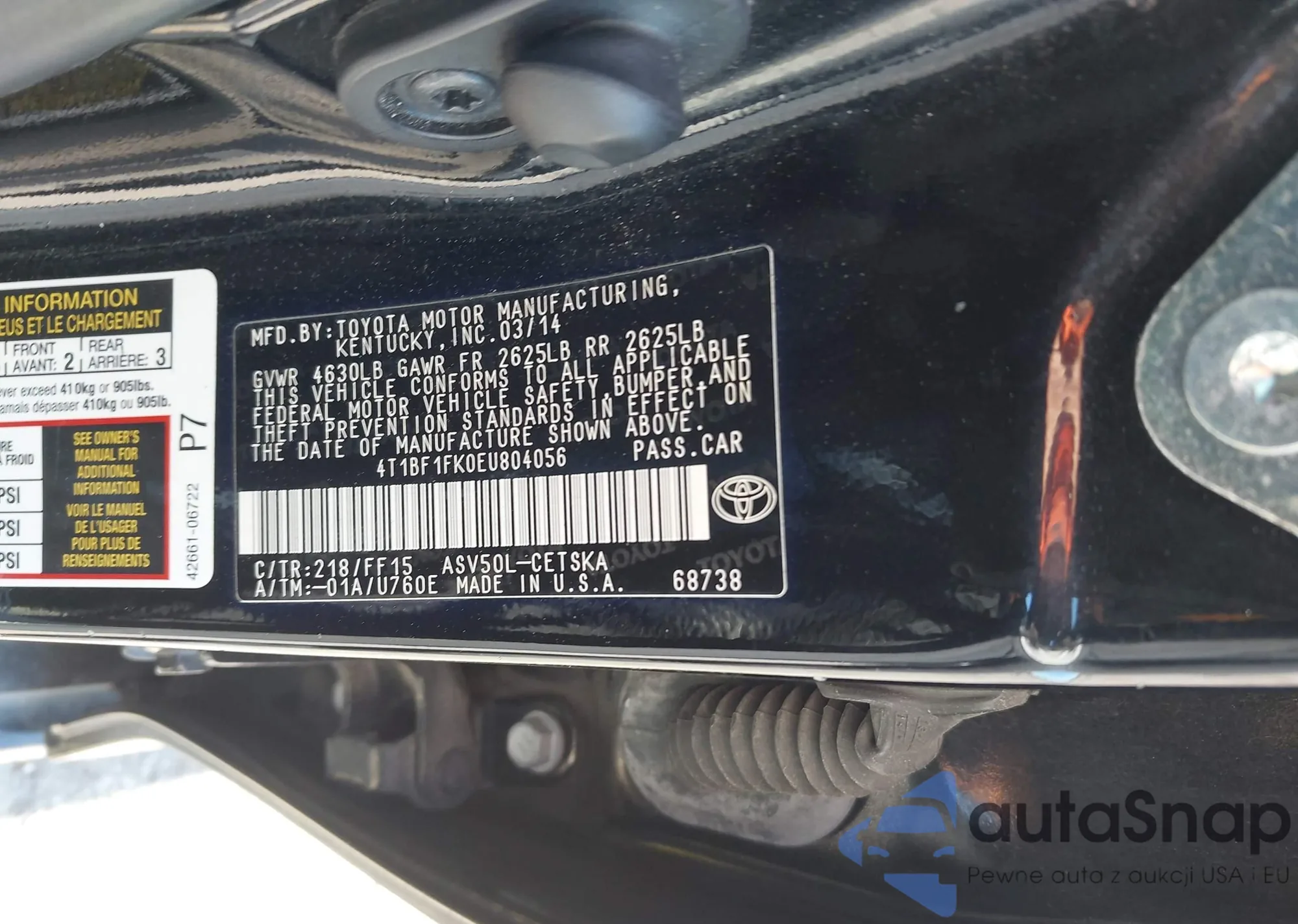 • VIN 4T1BF1FK0EU804056