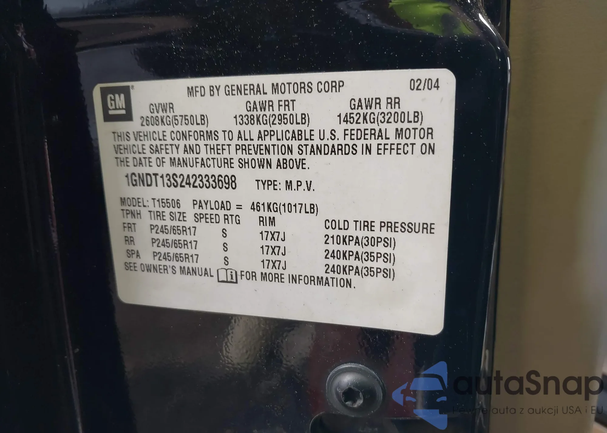 • VIN 4S4BP61C577315194