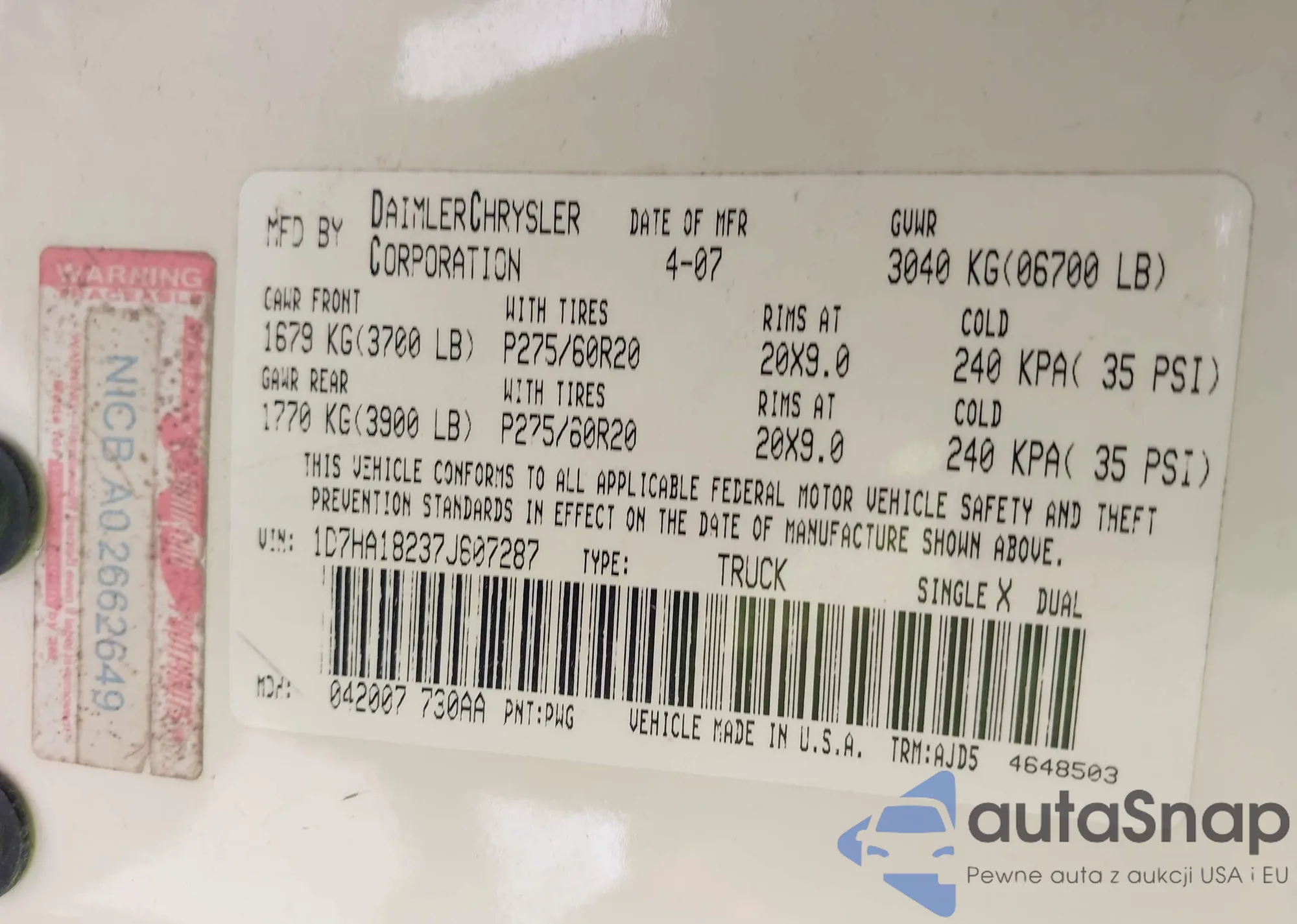 • VIN 1D7HA18237J607287