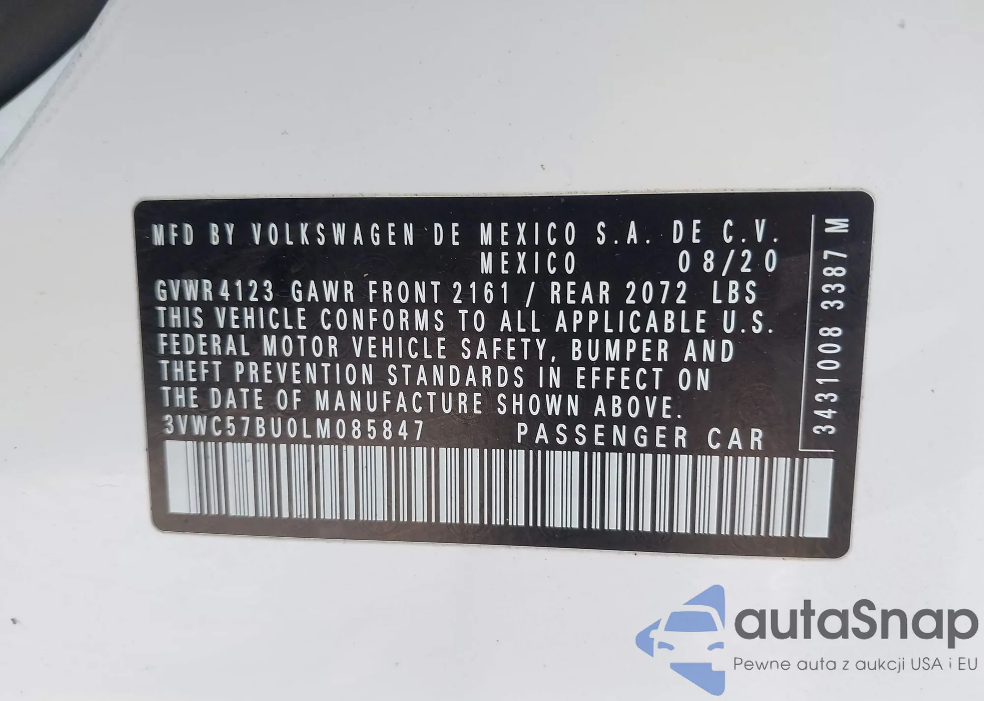 • VIN 3VWC57BU0LM085847