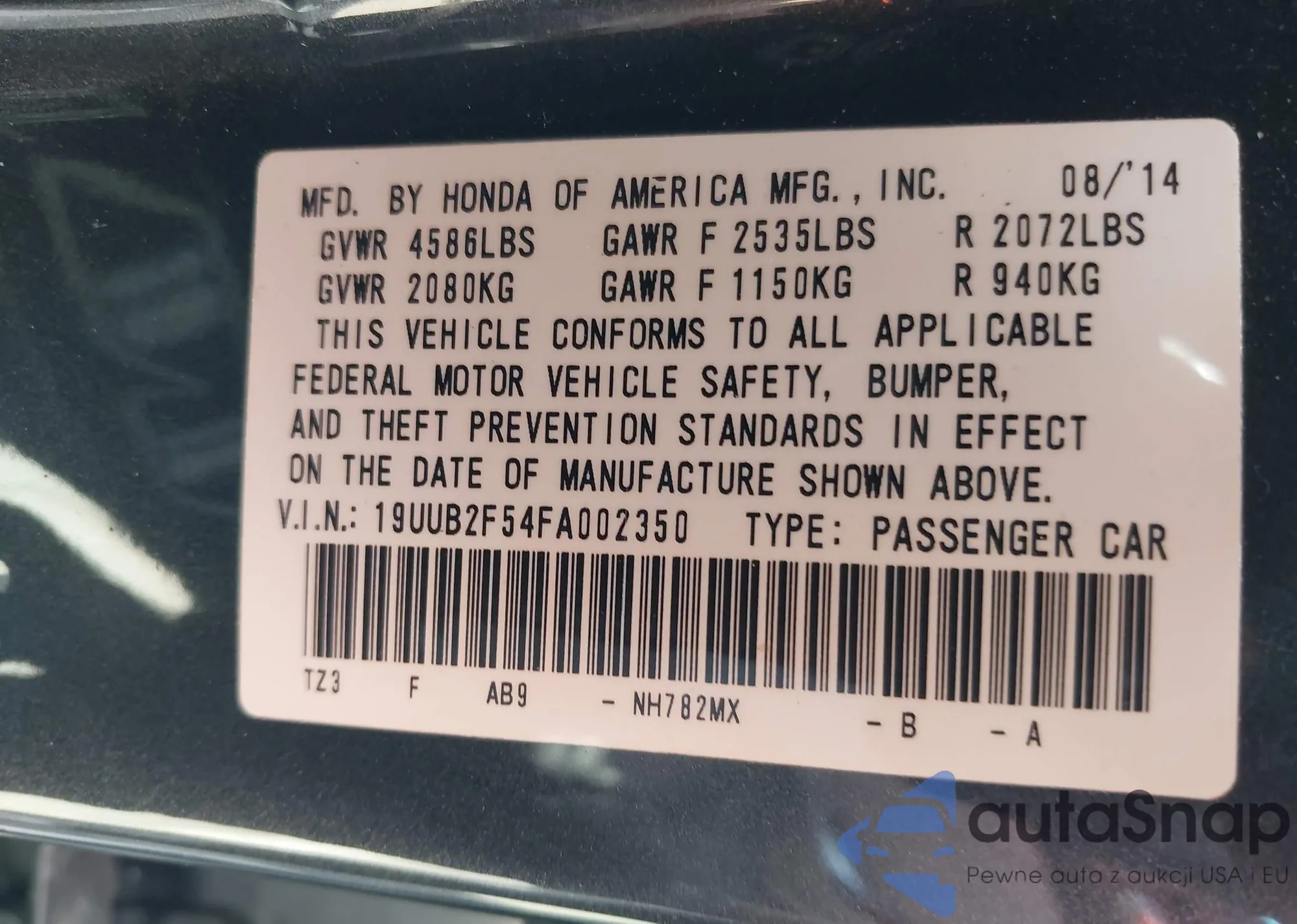 LOT: 42202654 VIN: 19XFA1F80AE063683