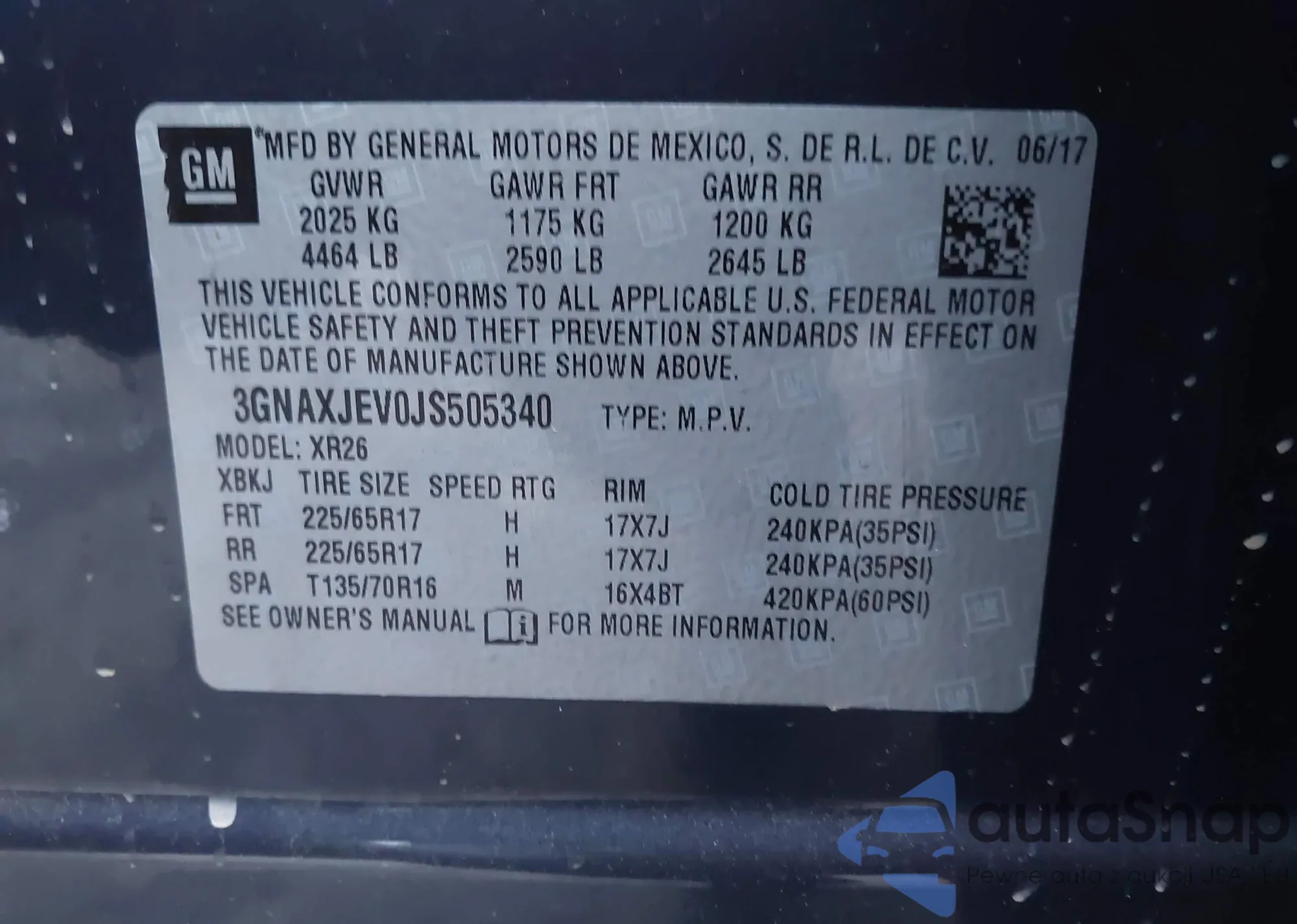 • VIN 3GNAXJEV0JS505340