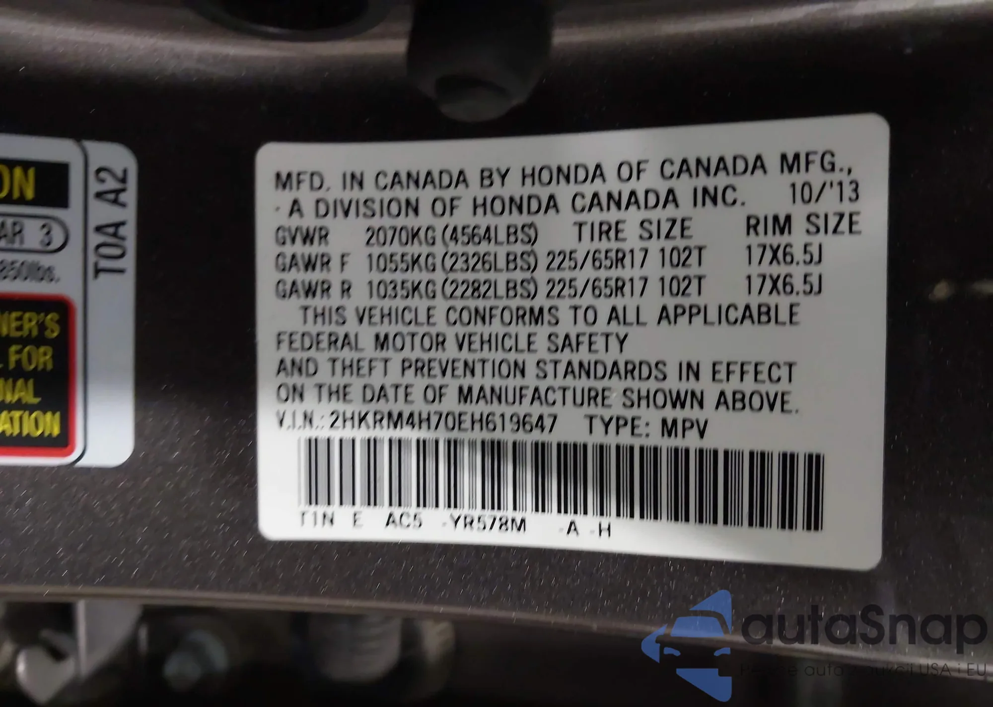 • VIN 2HKRL1852YH614874