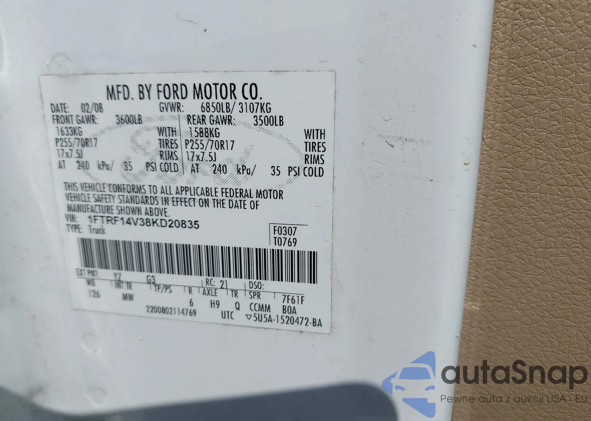 LOT: 42027523 VIN: 1FMJU1H58CEF24224