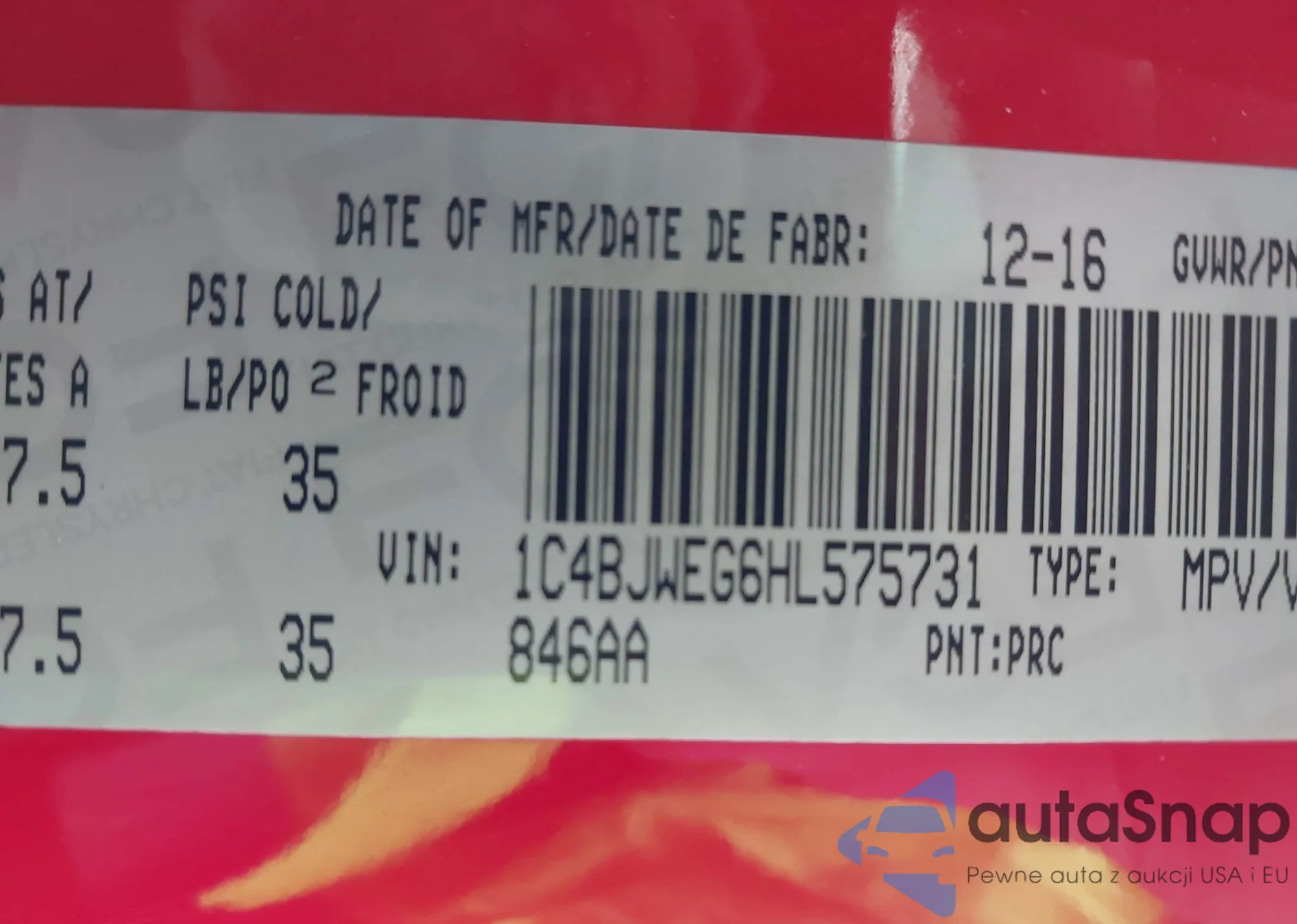 • VIN 1C4BJWEG6HL575731