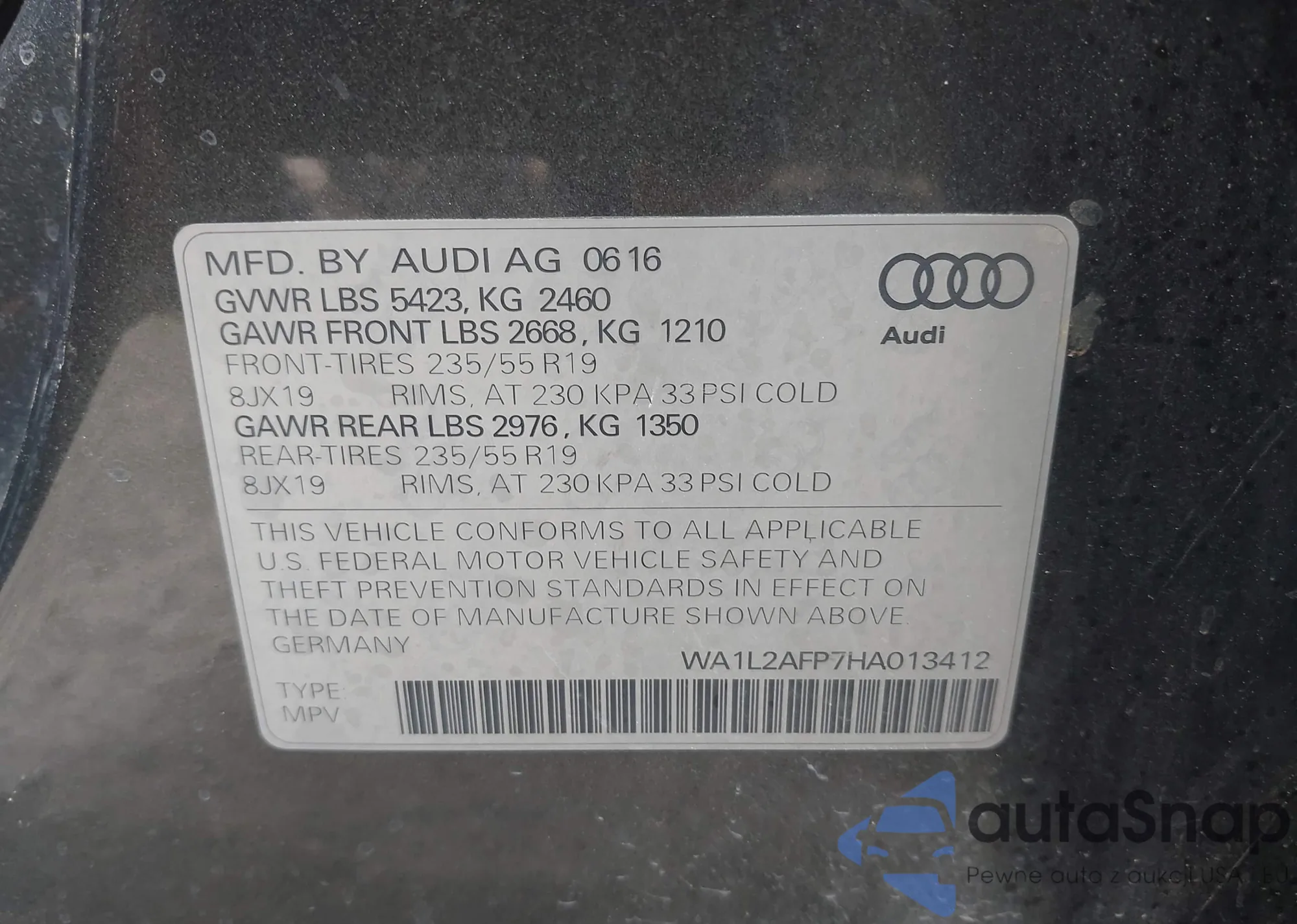 • VIN WA1L2AFP7HA013412