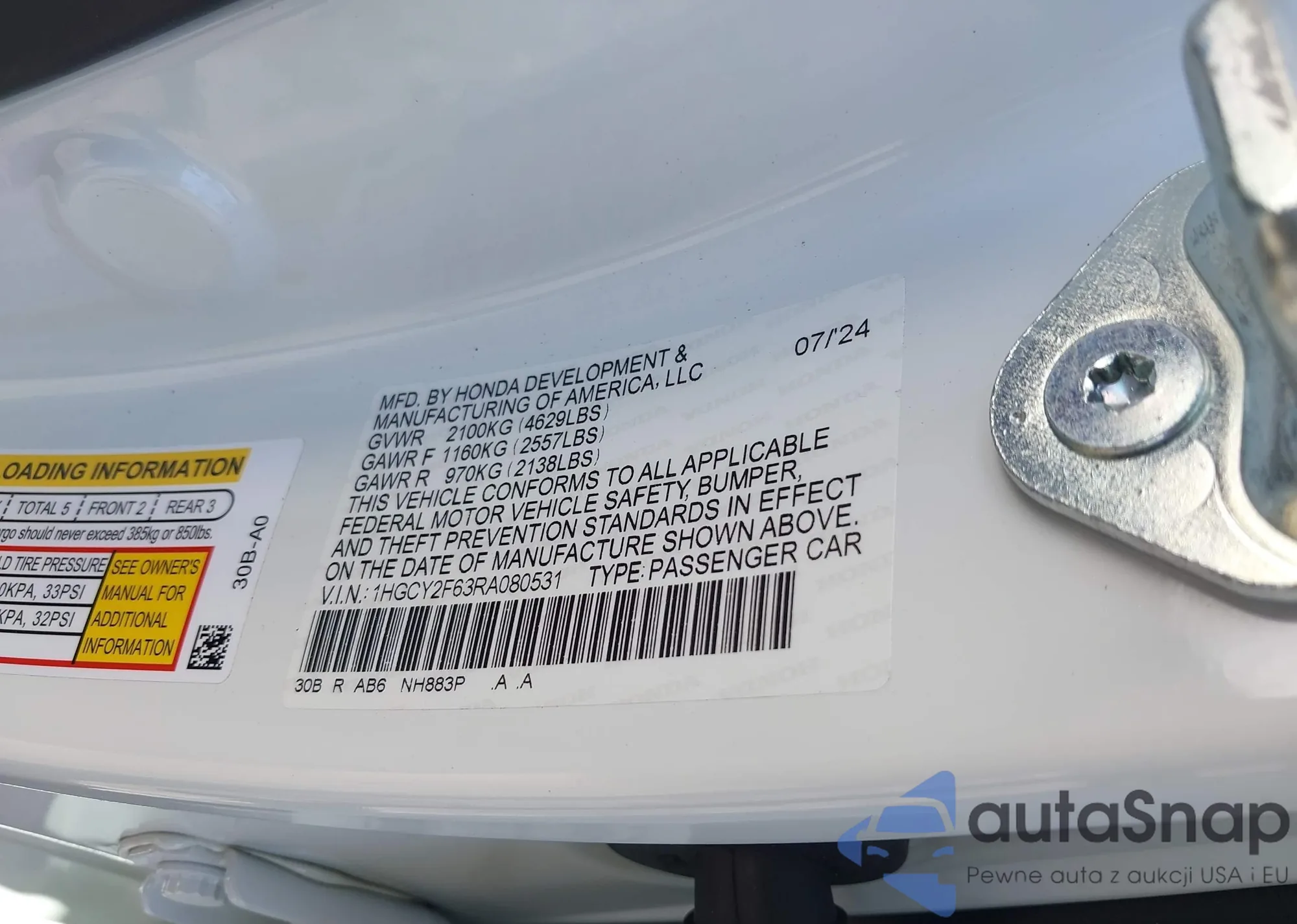 • VIN 1HGCV1F15MA120351