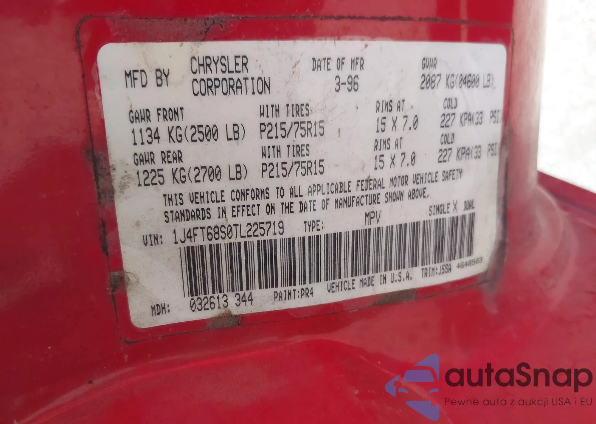 • VIN 1J4PN5GK8AW153139