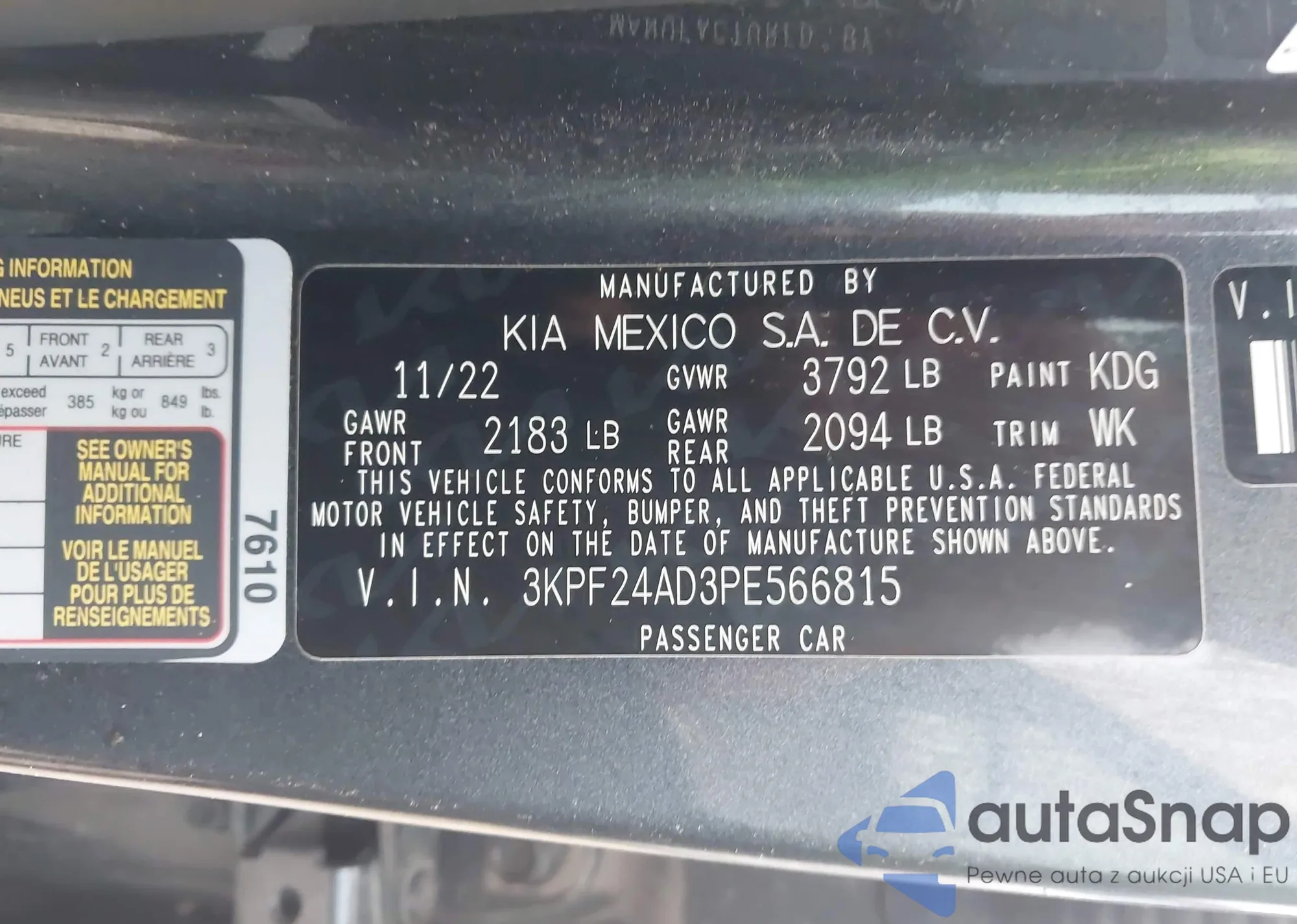 • VIN 3KPF24AD3PE566815