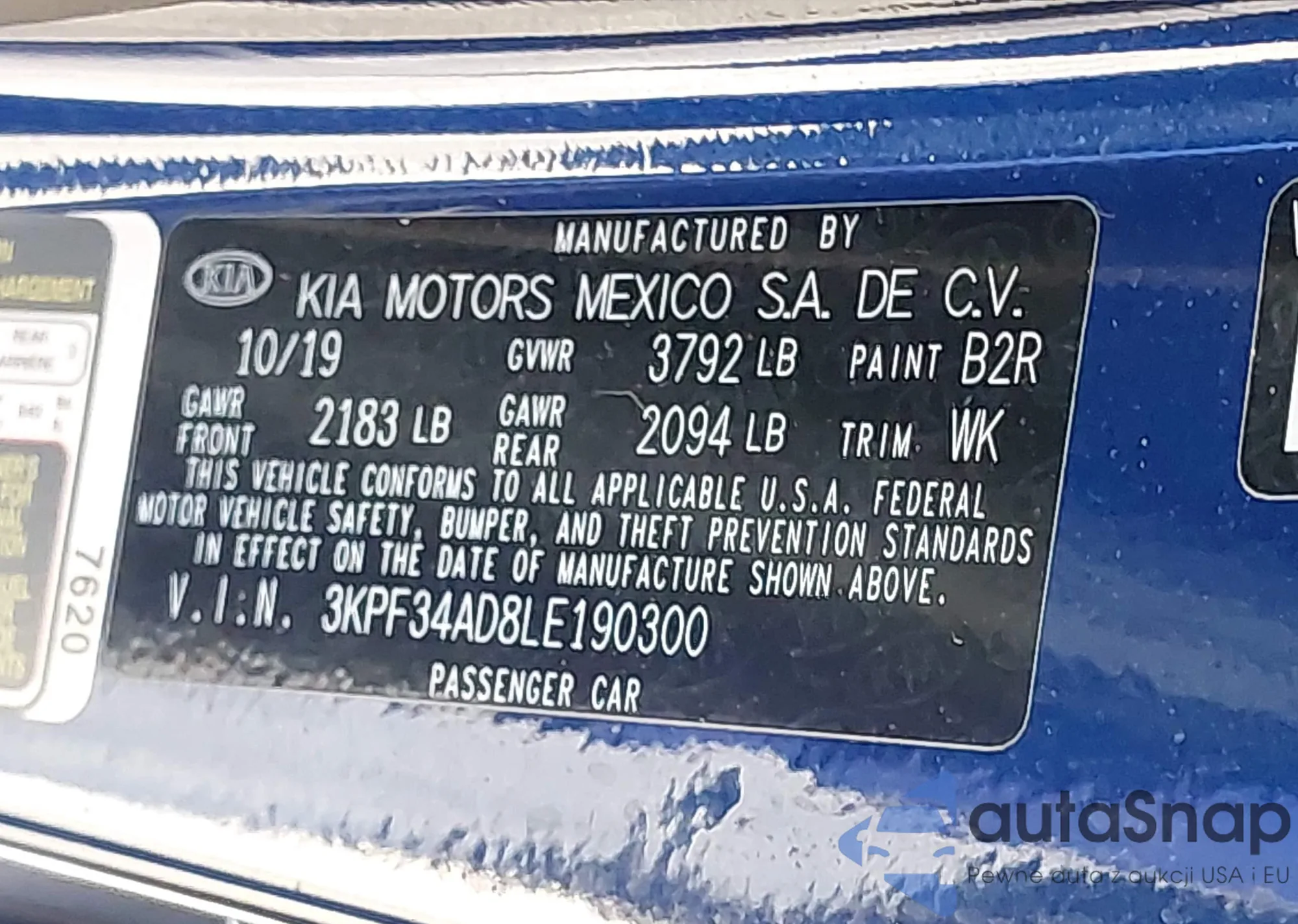 • VIN 3KPF34AD8LE190300