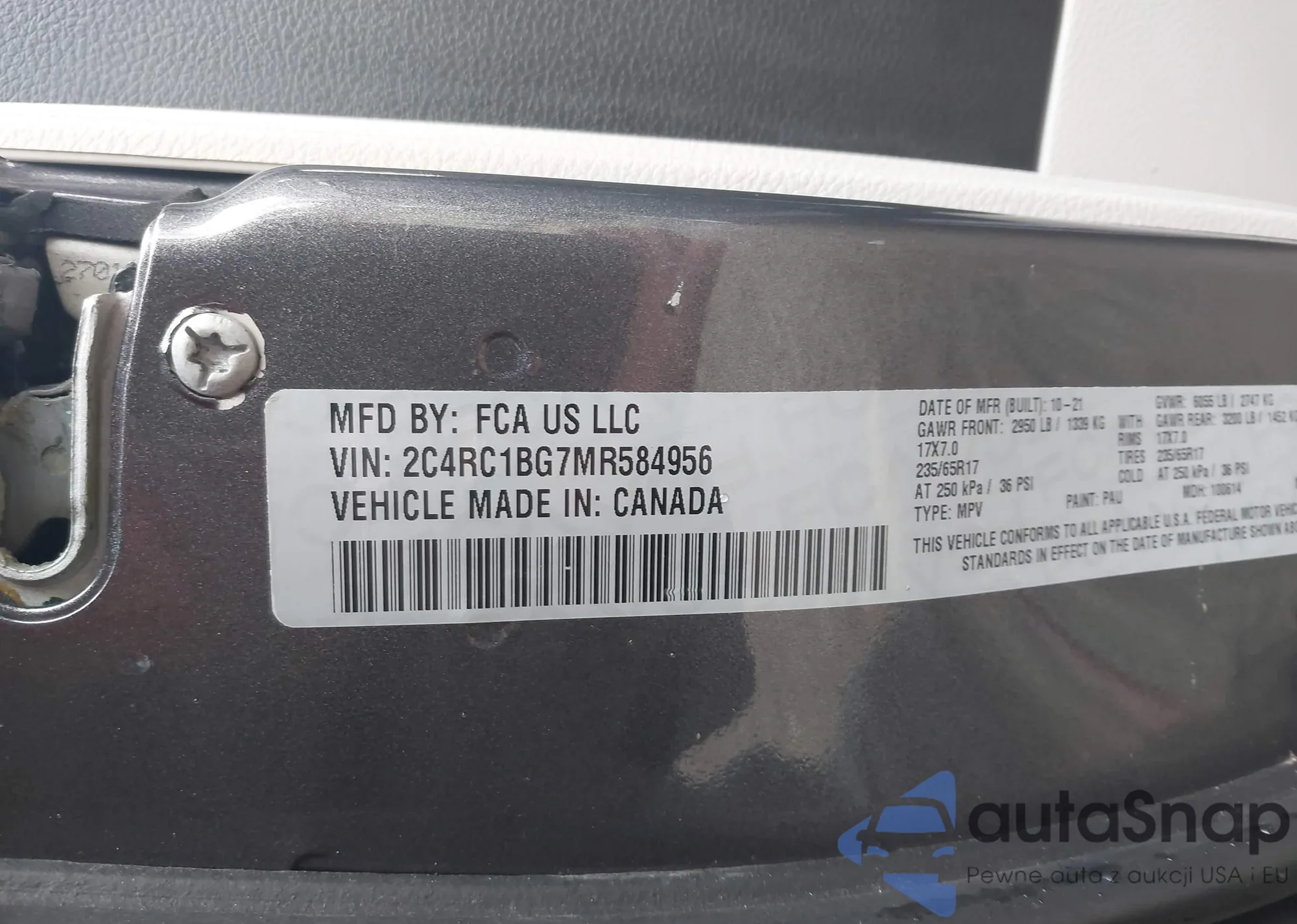 • VIN 2C4RC1BG7MR584956