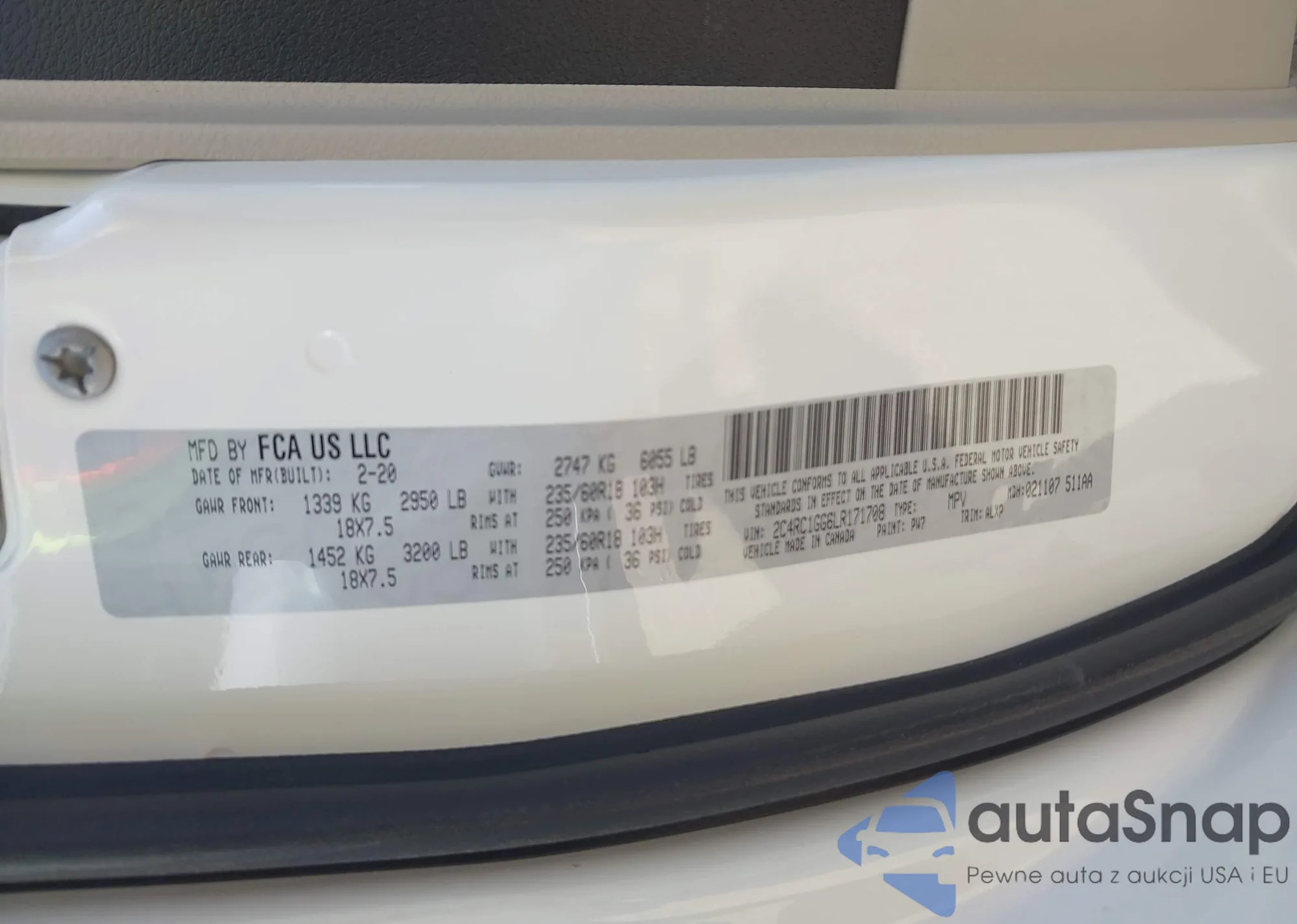 • VIN 2C4RC1GG6LR171708