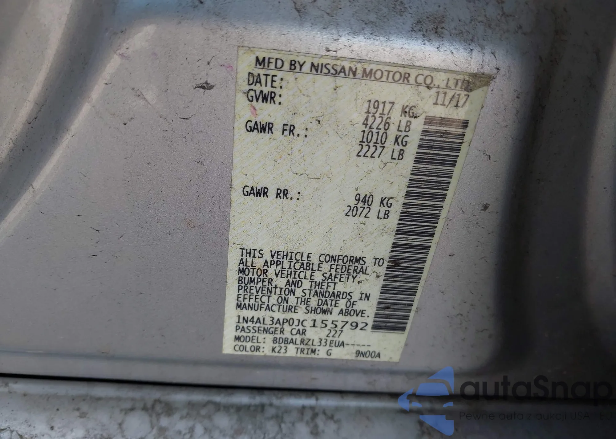 LOT: 42092361 VIN: 1N4AL3AP0JC155792