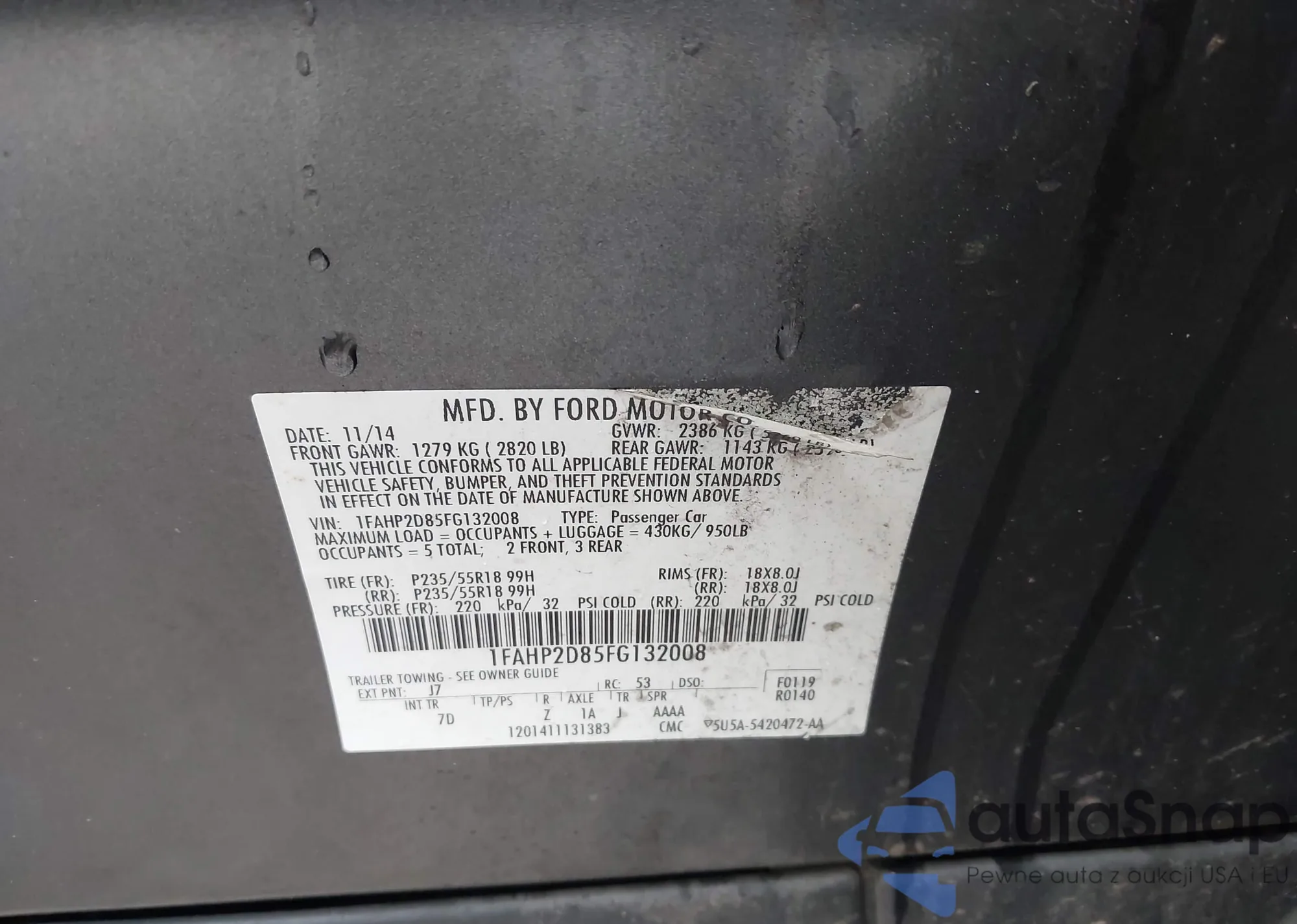• VIN 1FAHP2D85FG132008