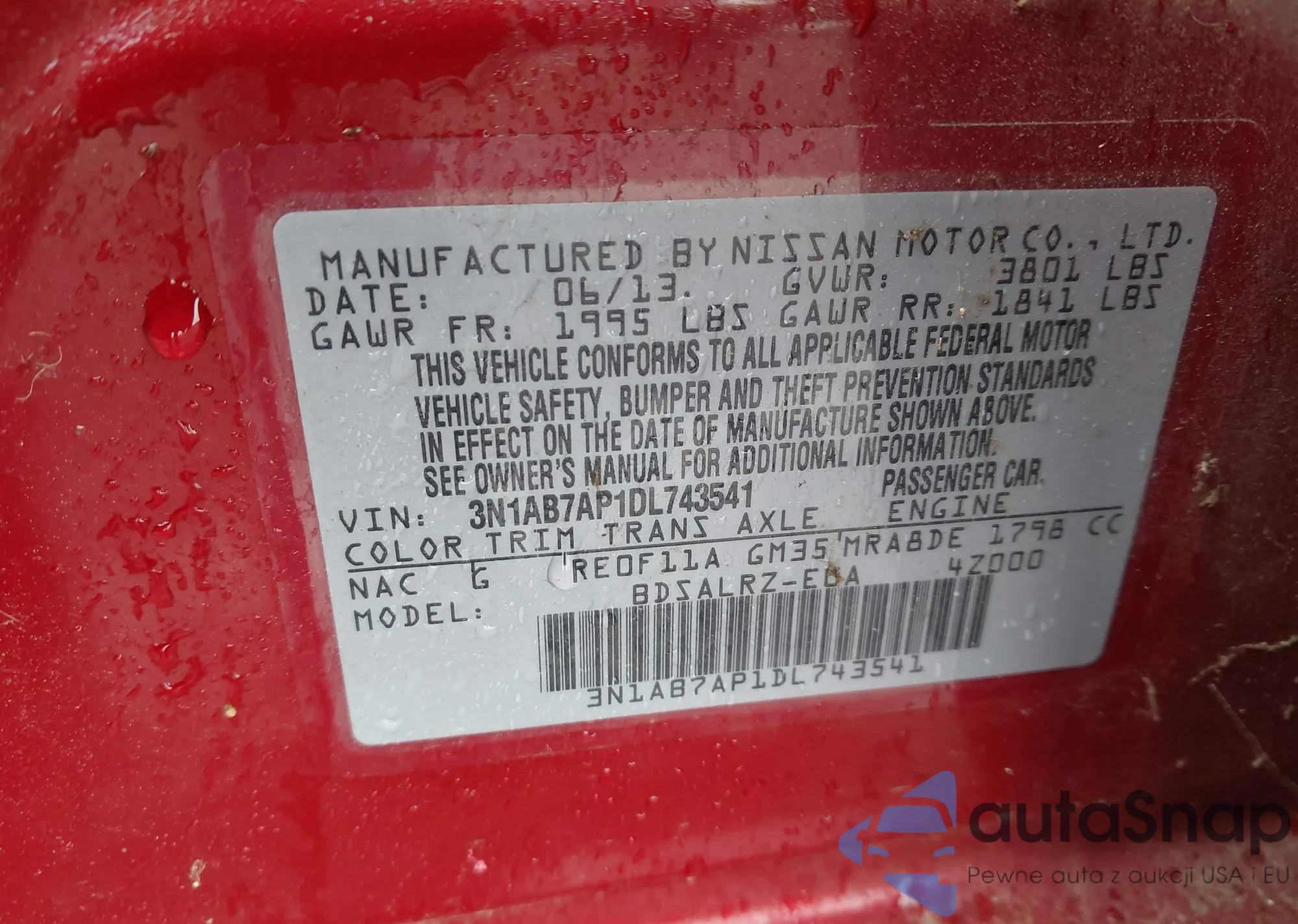 • VIN 3N1AB7AP1DL743541