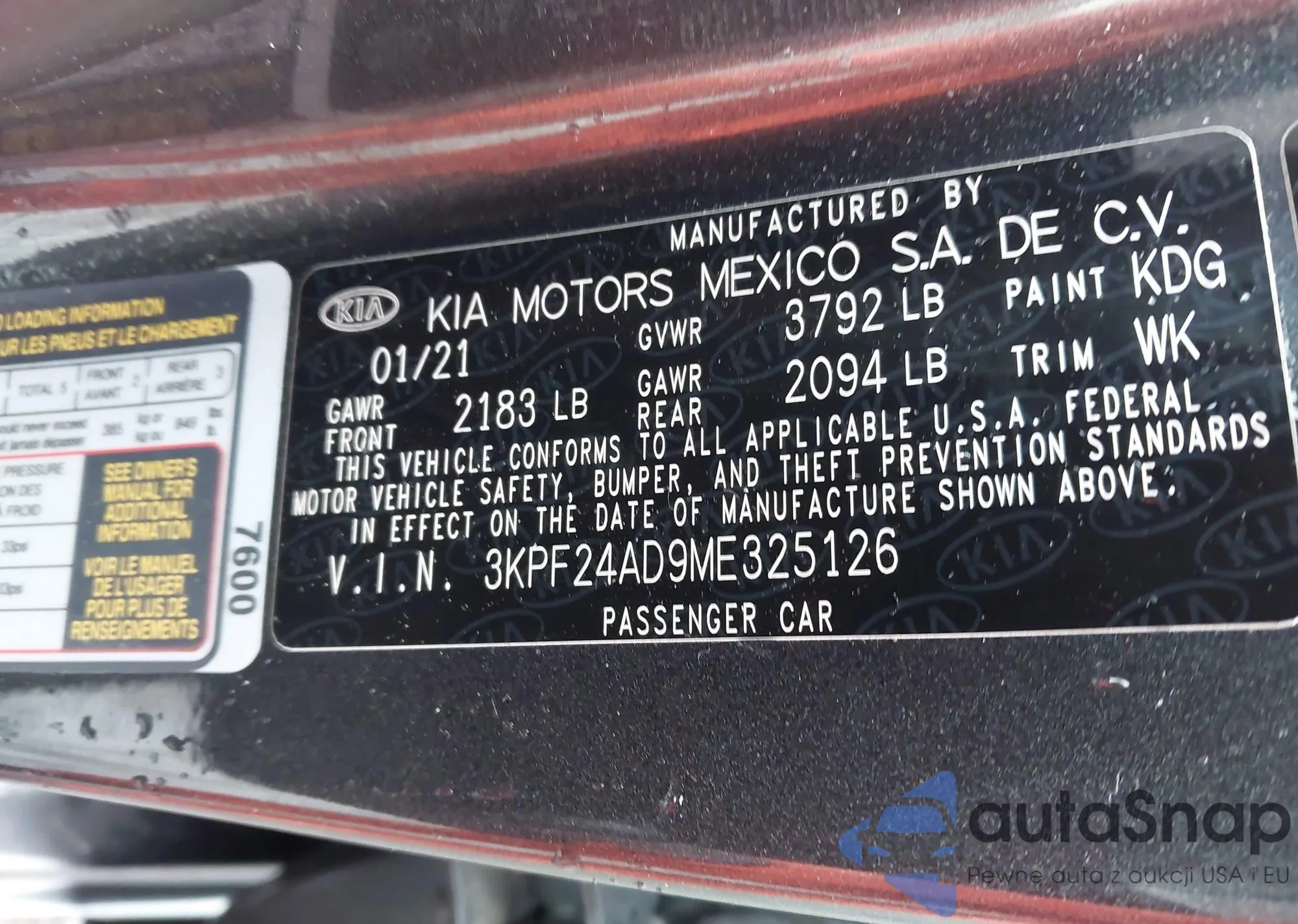 • VIN 3KPF24AD9ME325126