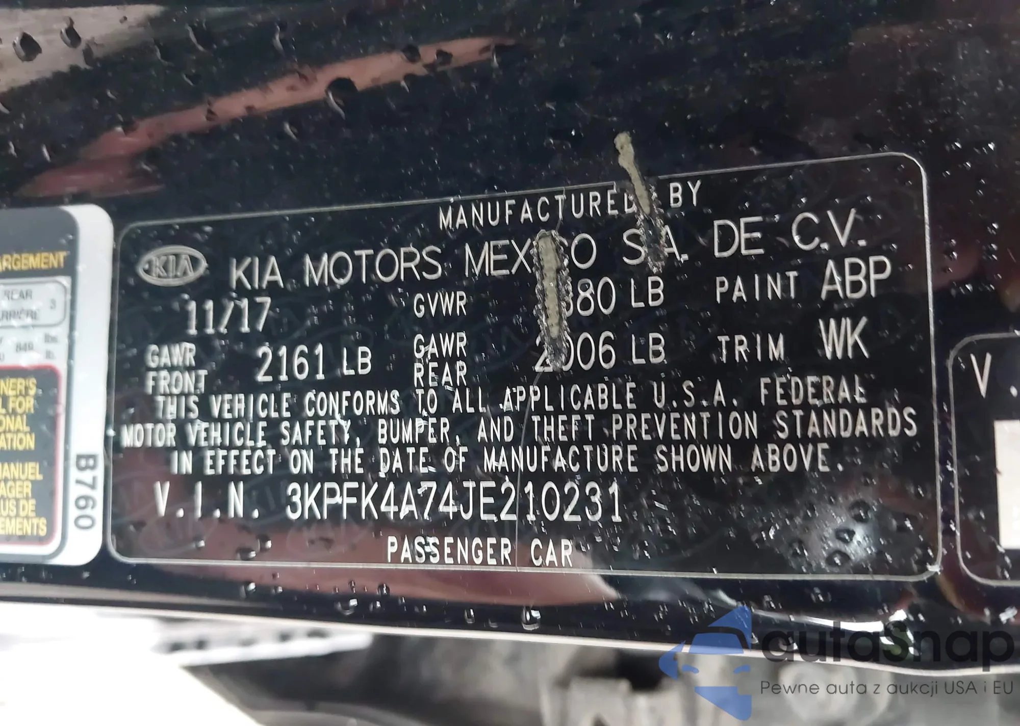 • VIN 3KPFK4A74JE210231