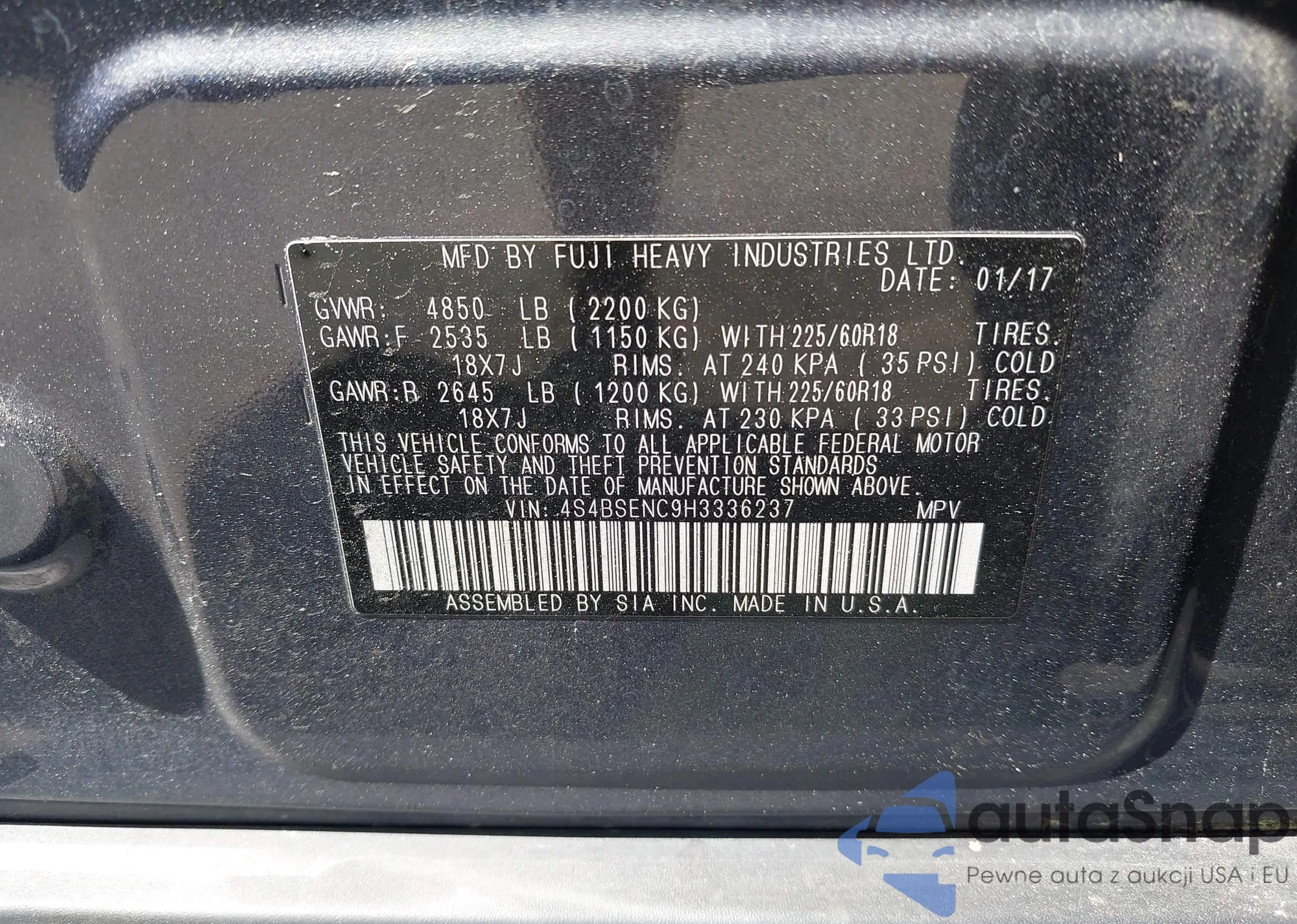 • VIN 4S4BSENC9H3336237
