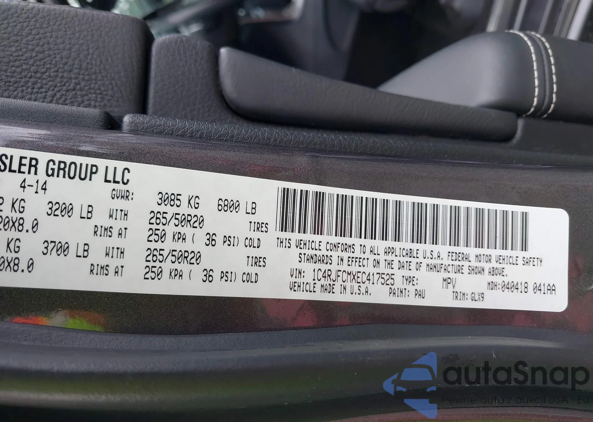 LOT: 42300664 VIN: 1C4RJFCMXEC417525