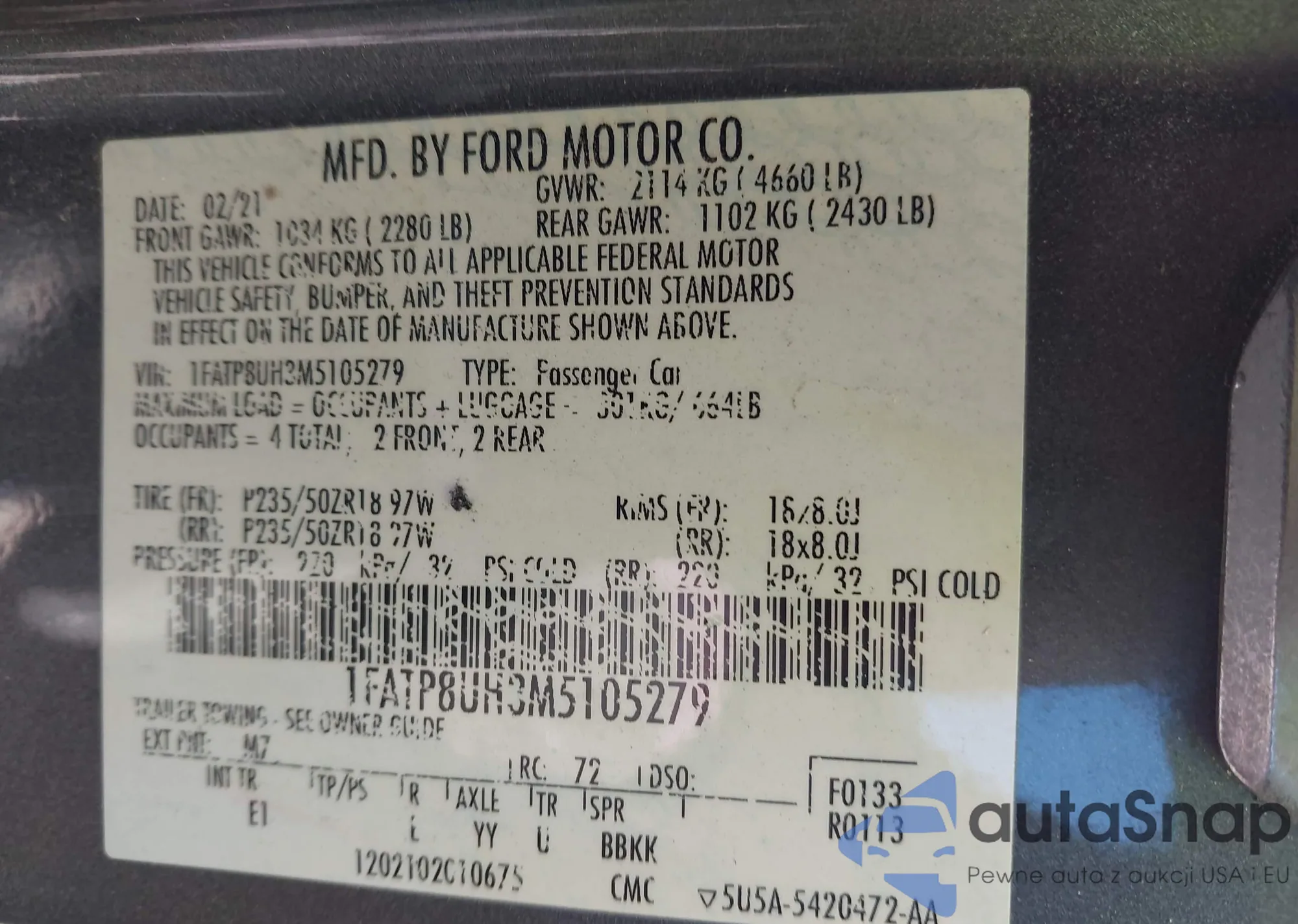 • VIN 1FALP5246SG211158
