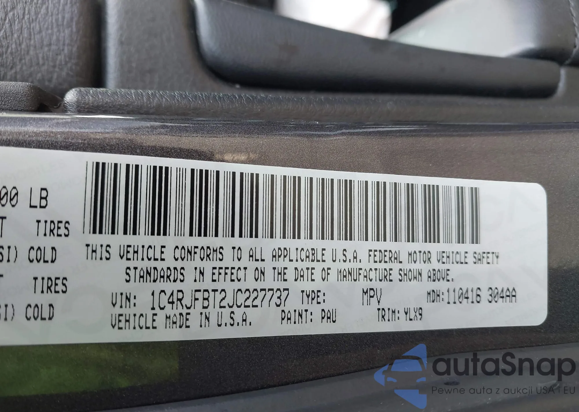 • VIN 1C4RJFBT2JC227737