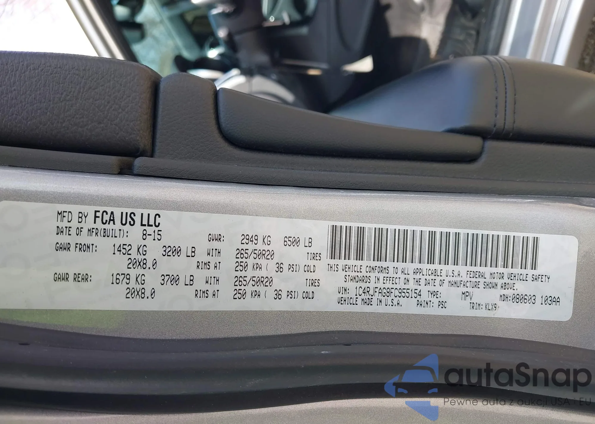 • VIN 1C4RJFAG8FC955154