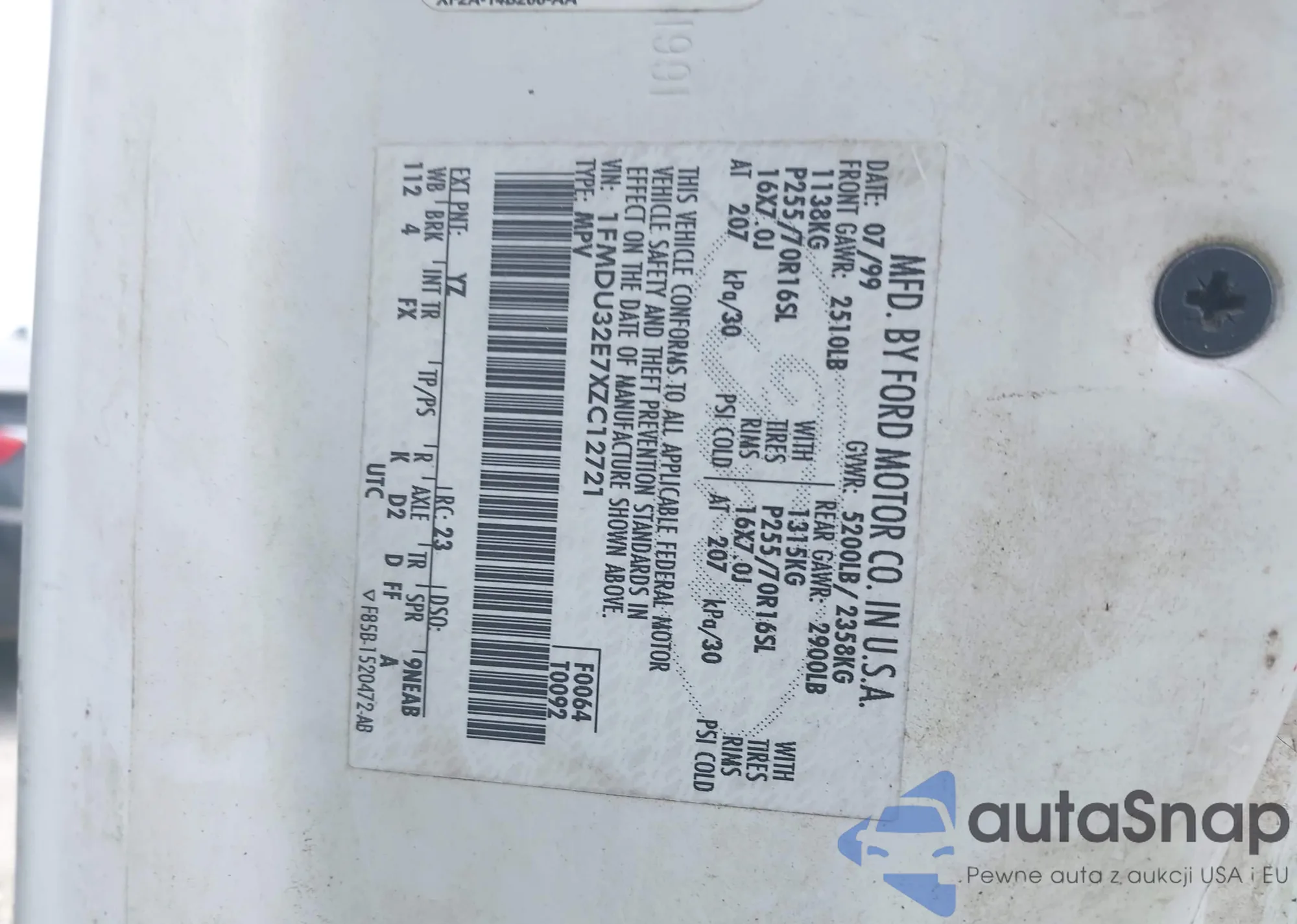 LOT: 42093767 VIN: 1FMDU32E7XZC12721