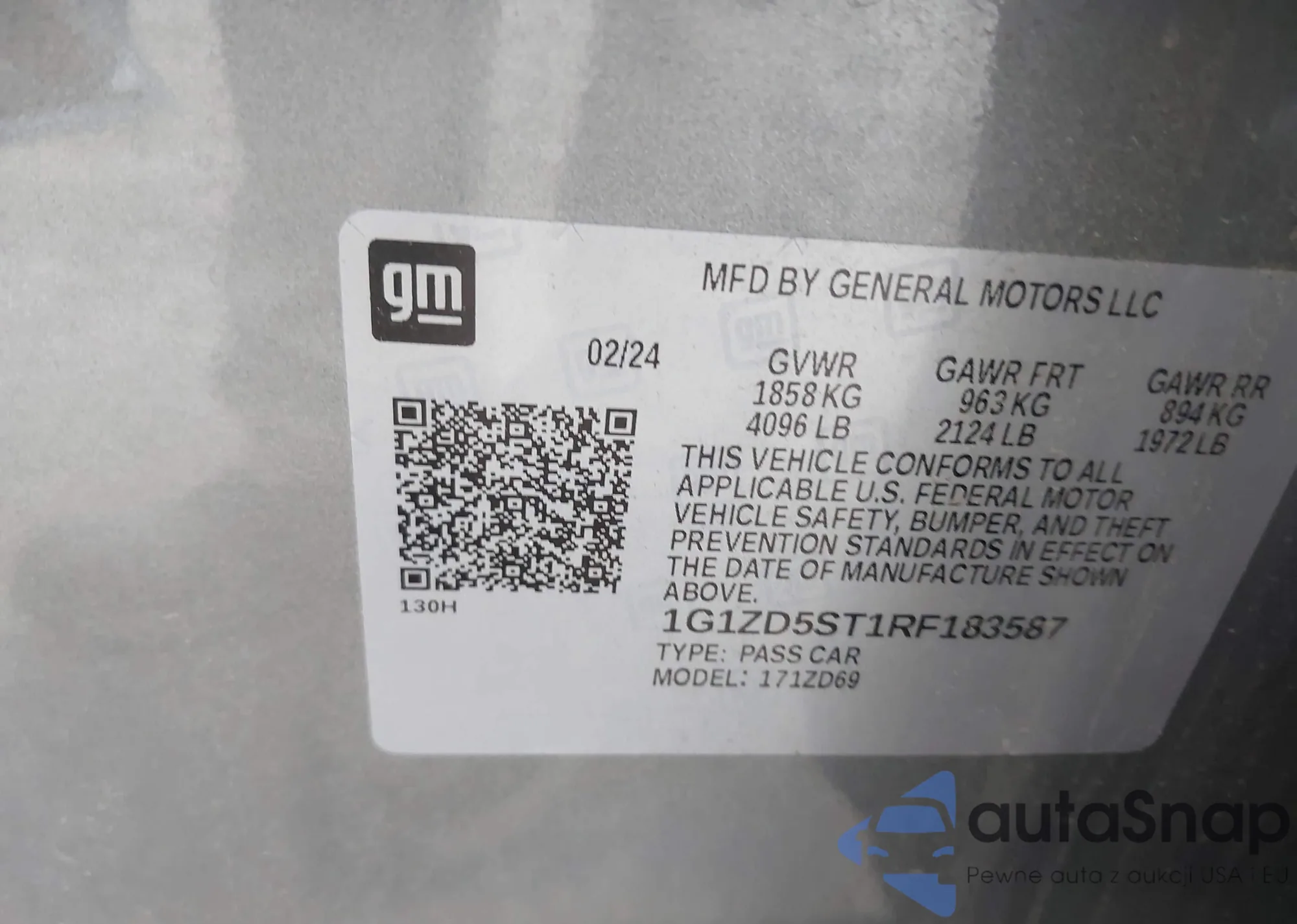 LOT: 42342679 VIN: 1G1ZD5ST1RF183587