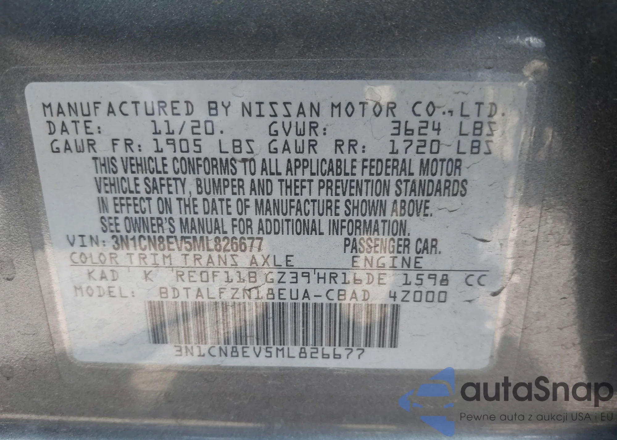 • VIN 3VWPL7AJ0BM605185