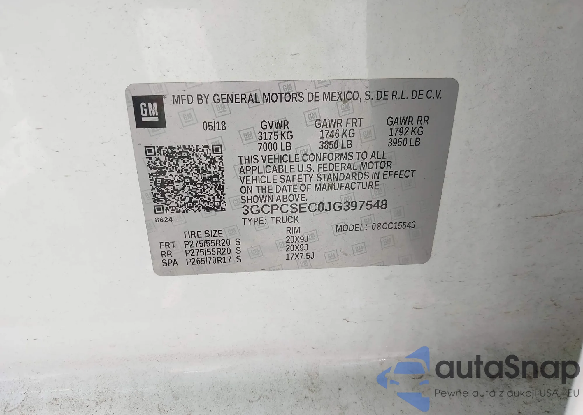 LOT: 42204493 VIN: 3GCPCSEC0JG397548