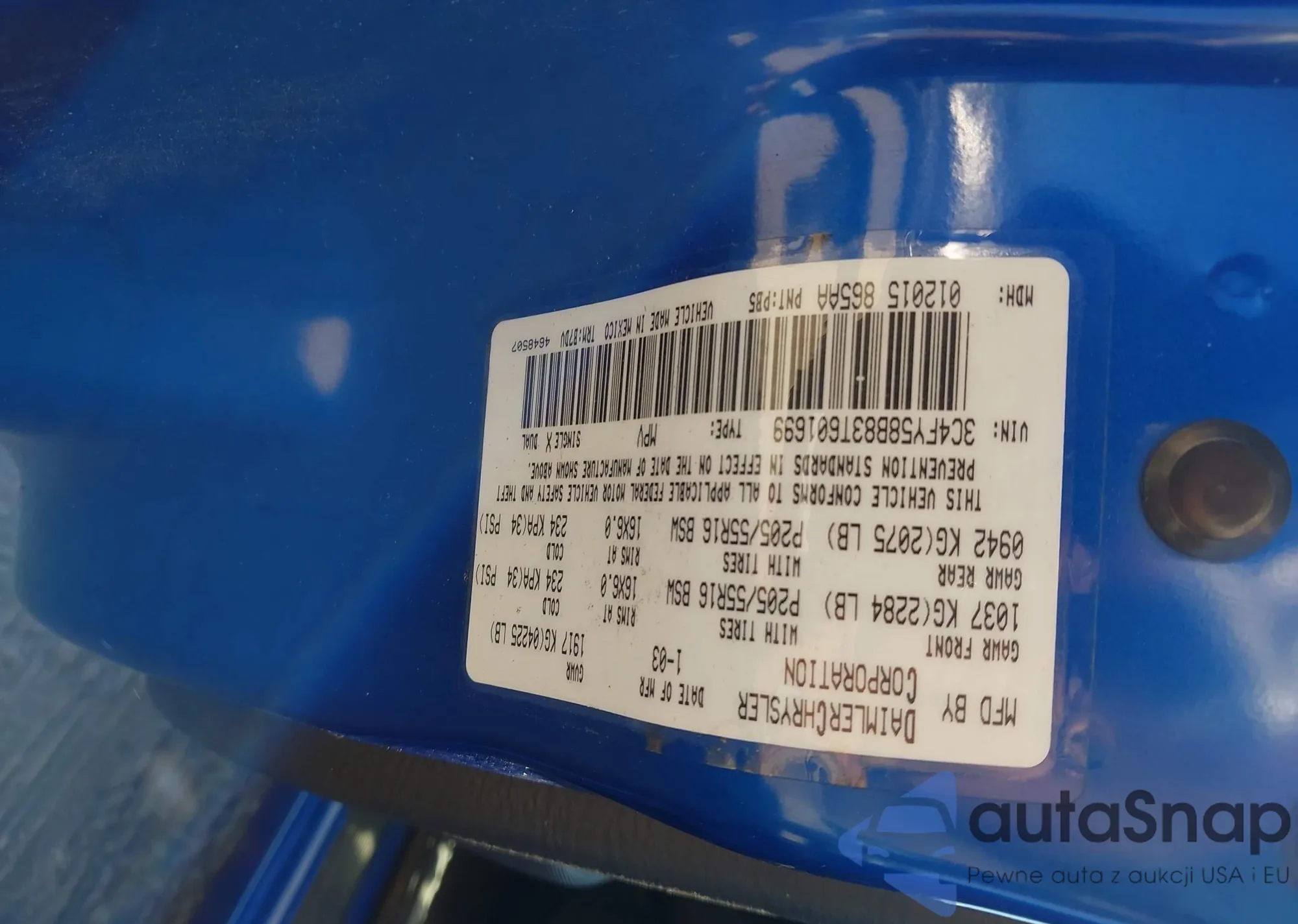 • VIN 3C4FY58B83T601699